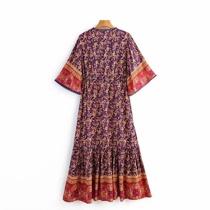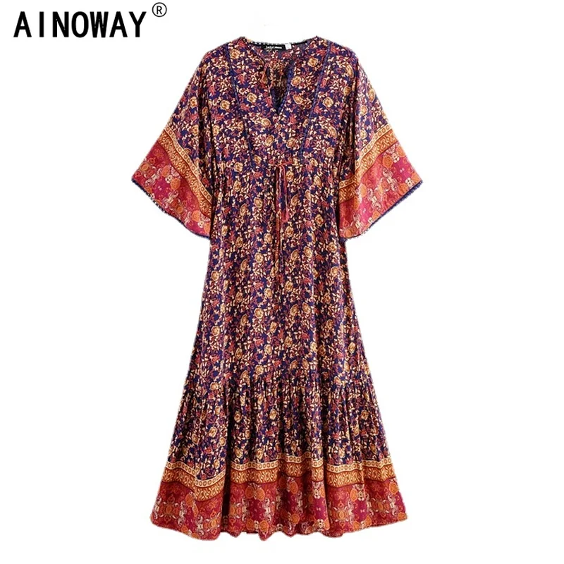 Женское богемное платье с рукавами летучая мышь, V-образным вырезом