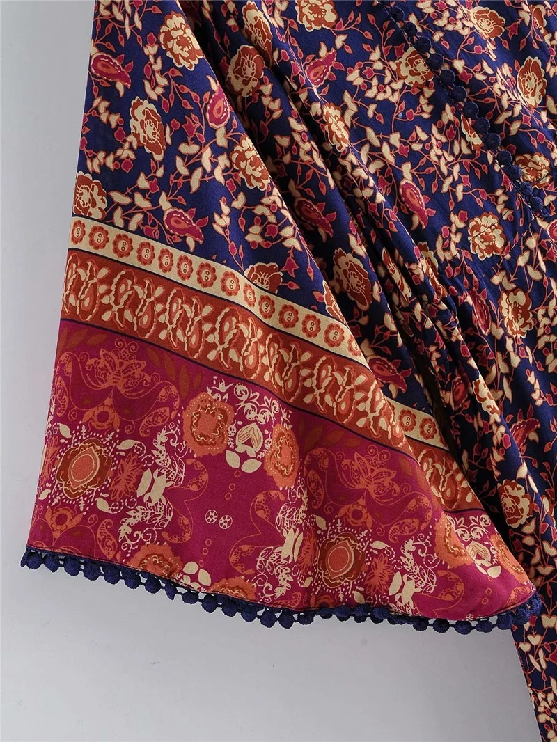 Женское этническое пляжное платье Бохо с длинным рукавом и цветочны...