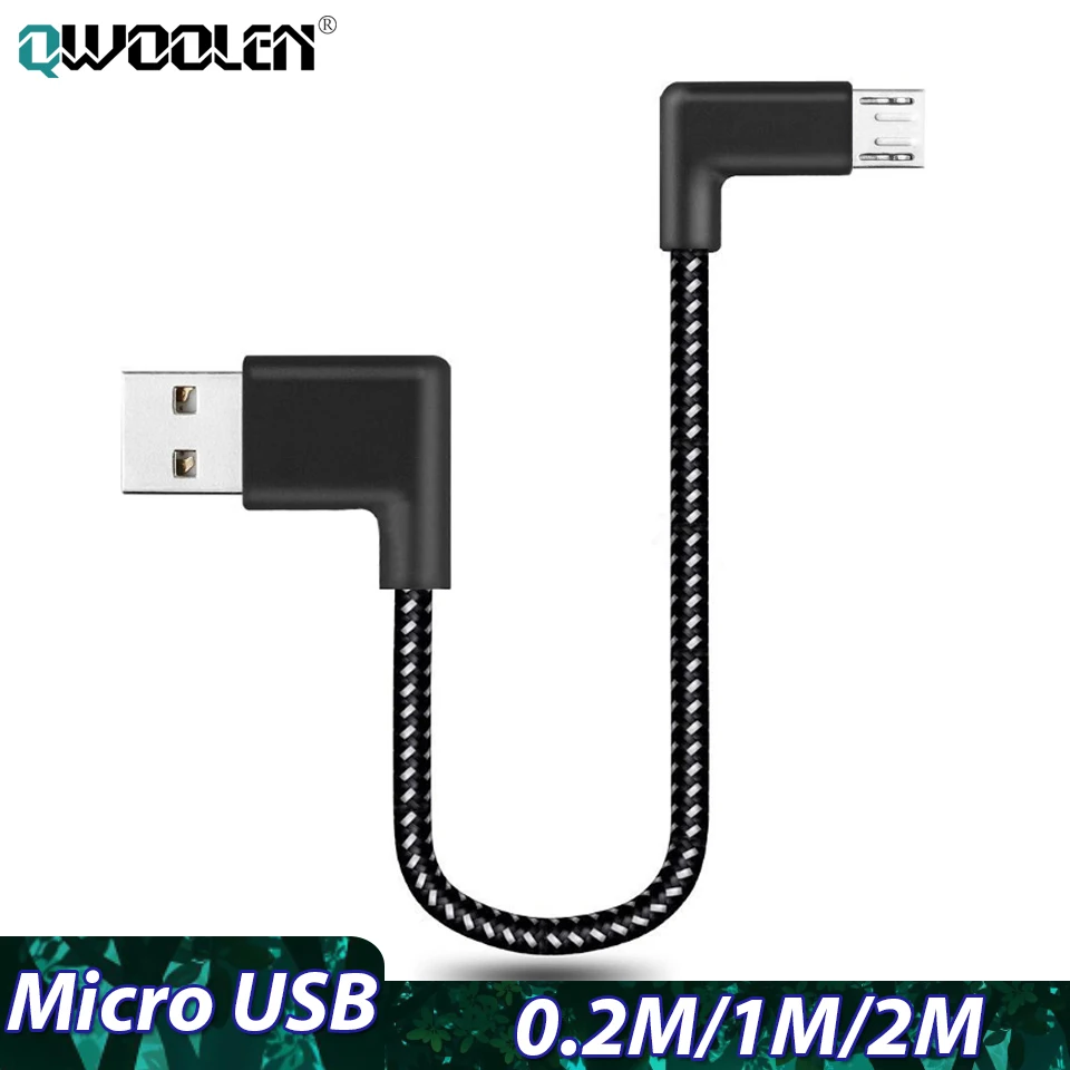 90 градусов Micro USB 20 см1 м2 м короткий кабель для быстрой зарядки L образный кабель для зарядного устройства для Xiaomi Redmi 8 5a Huawei Honor