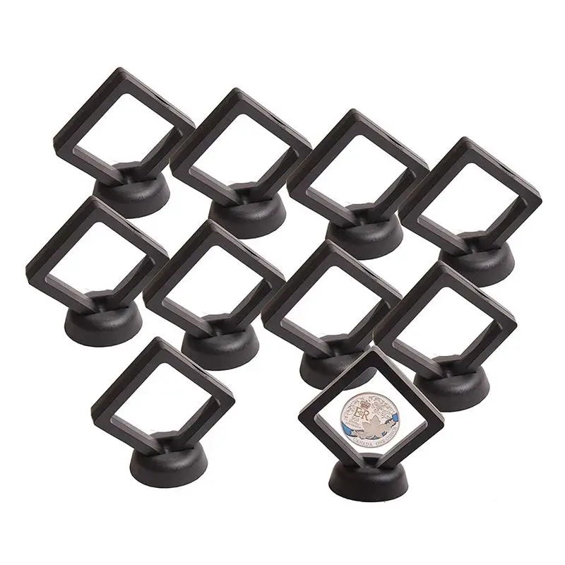 Коробка для демонстрации монет-набор из 10 3D плавающих рамок с держателем дисплея с подставкой для вызова монет, медальонов АА, ювелирных изделий, черного цвета, 2.