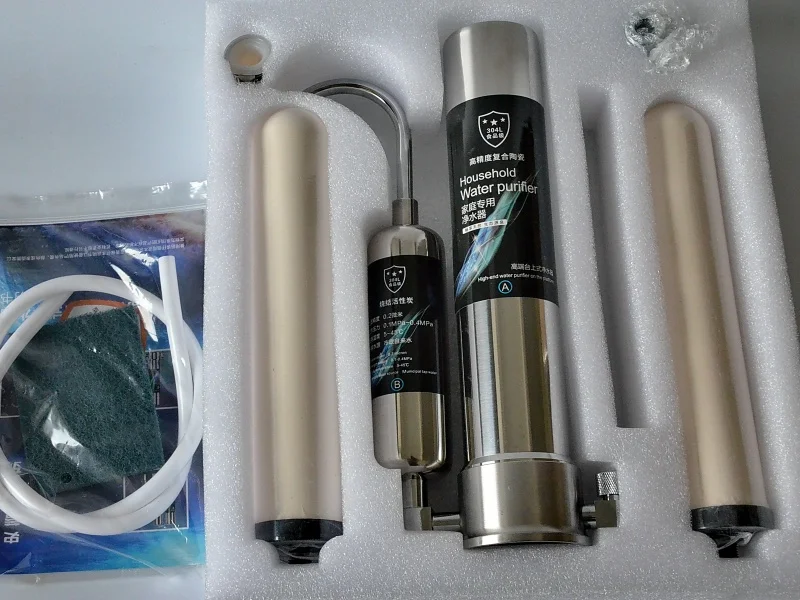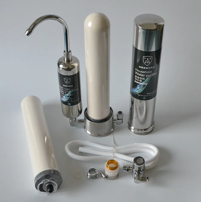 2-ступенчатый новый фильтр для водопроводной воды с 1 дополнительной керамической заменойполностью из нержавеющей стали 304, очиститель воды для столешницы