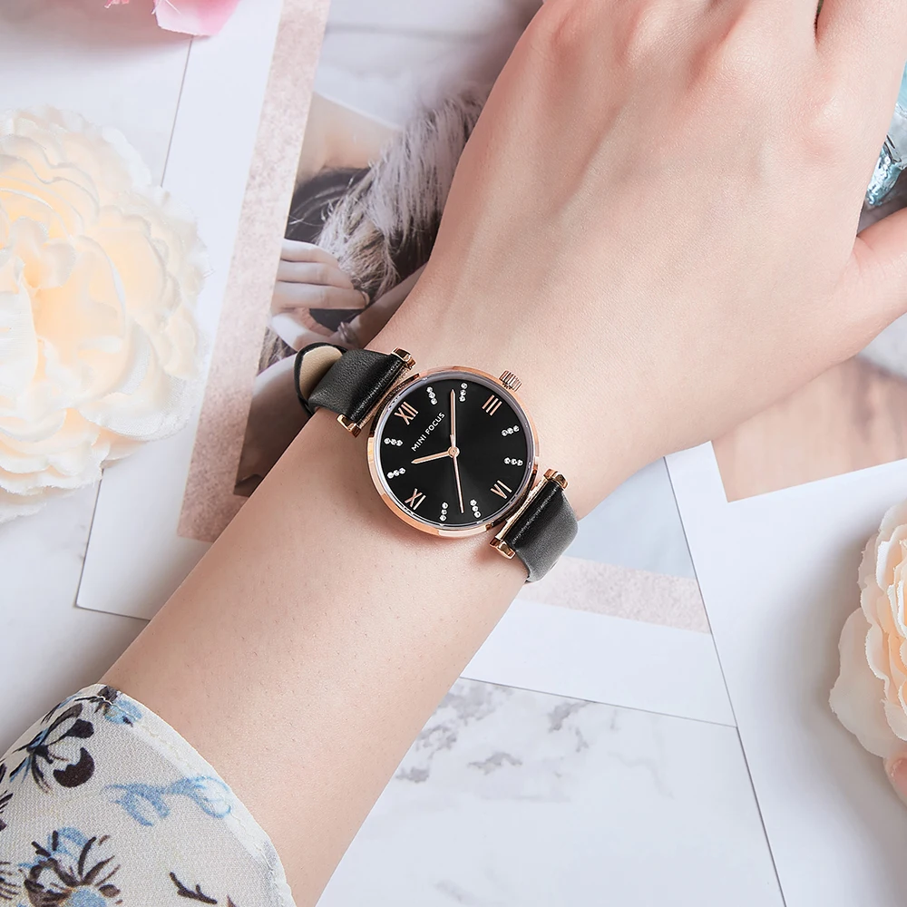 Мини фокус новые часы для женщин Роскошные модные женские водонепроницаемые часы черные кожаные повседневные женские часы женский подарок Montre Femme