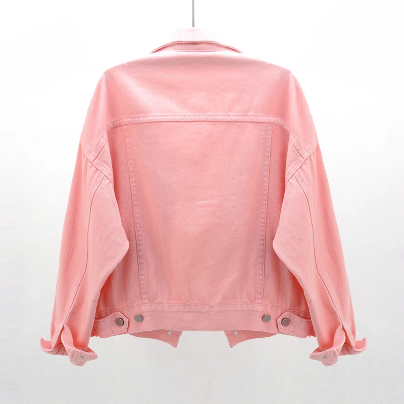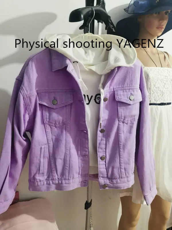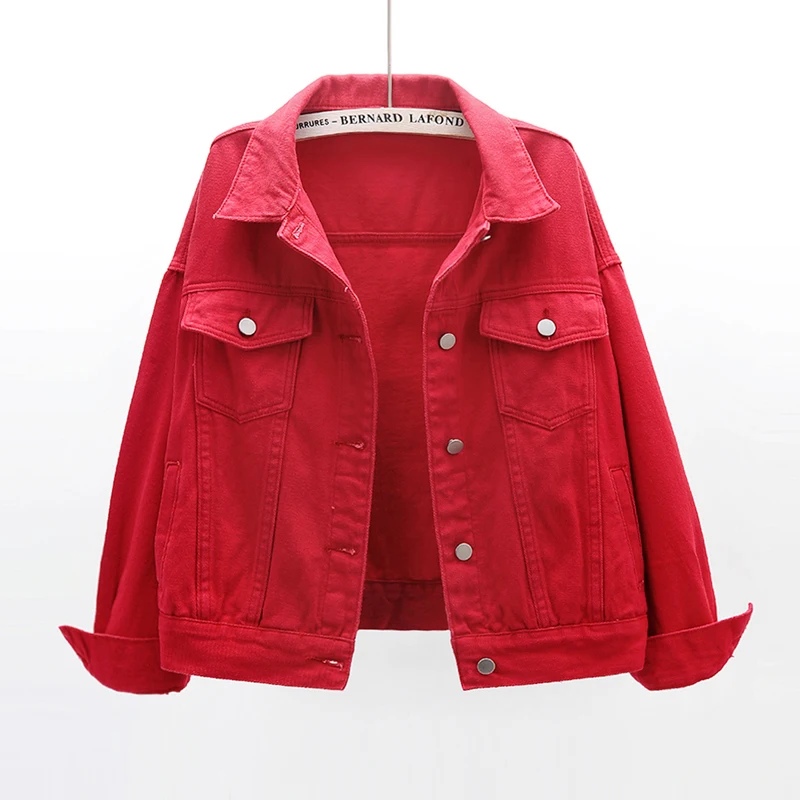 Женская джинсовая куртка, Короткая свободная куртка ярких цветов, с длинным рукавом, повседневная, для весны и осени, 2021