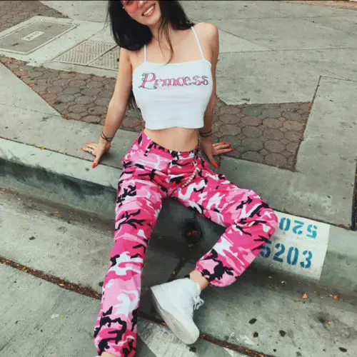 Брюки-карго женские камуфляжные с завышенной талией, брюки в стиле хип-хоп, армейские боевые длинные капри в стиле милитари