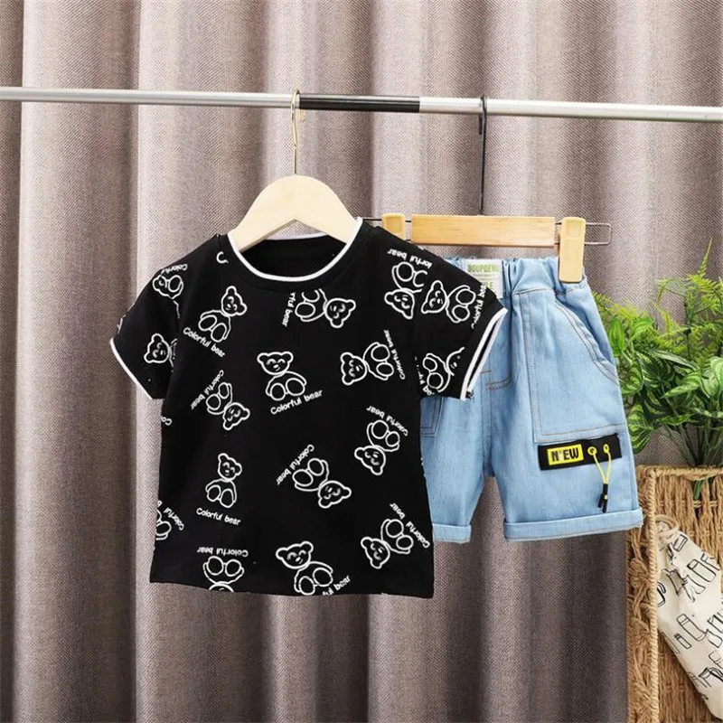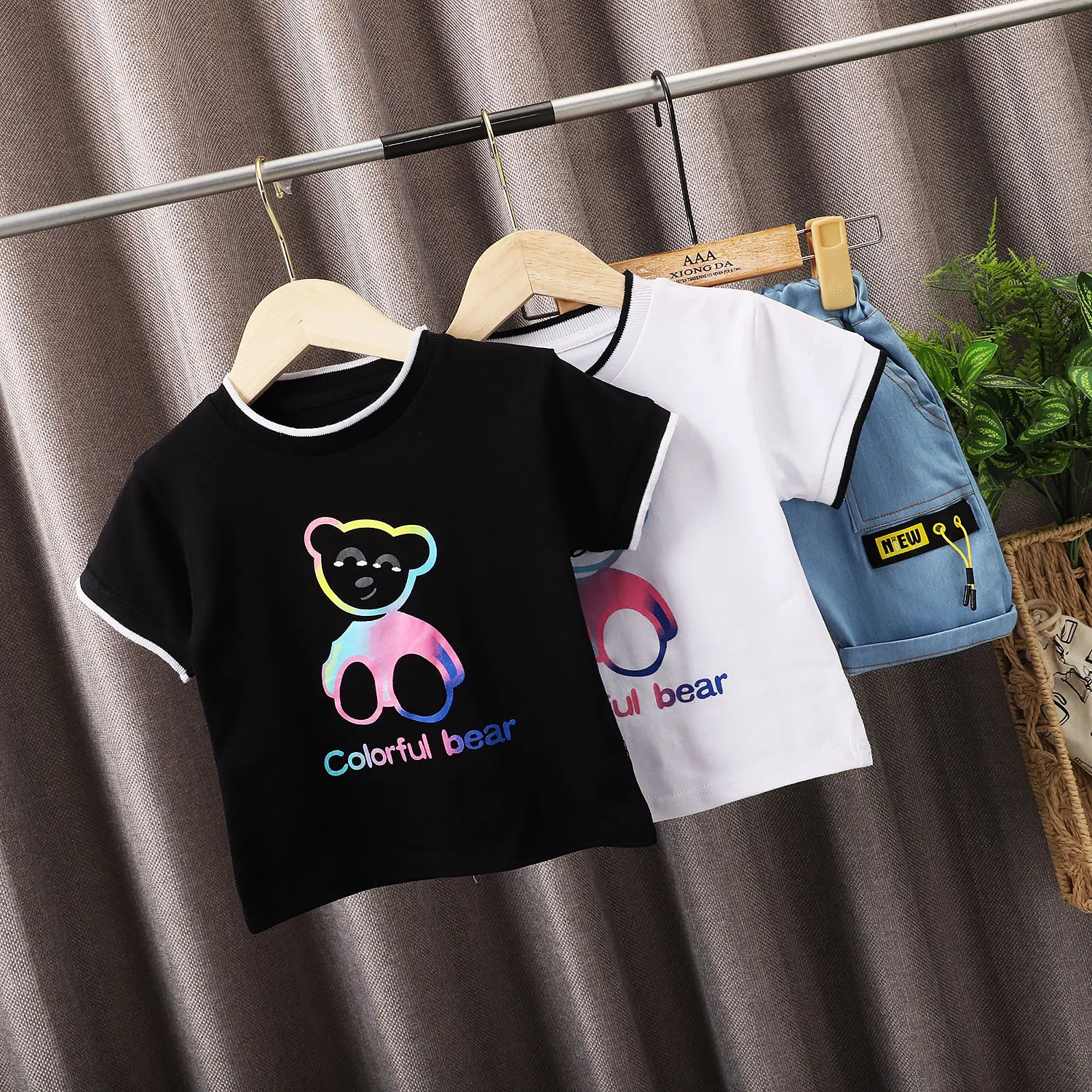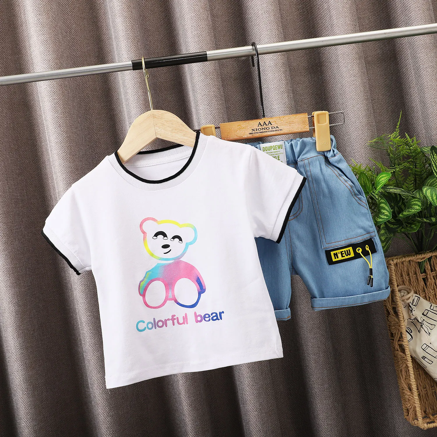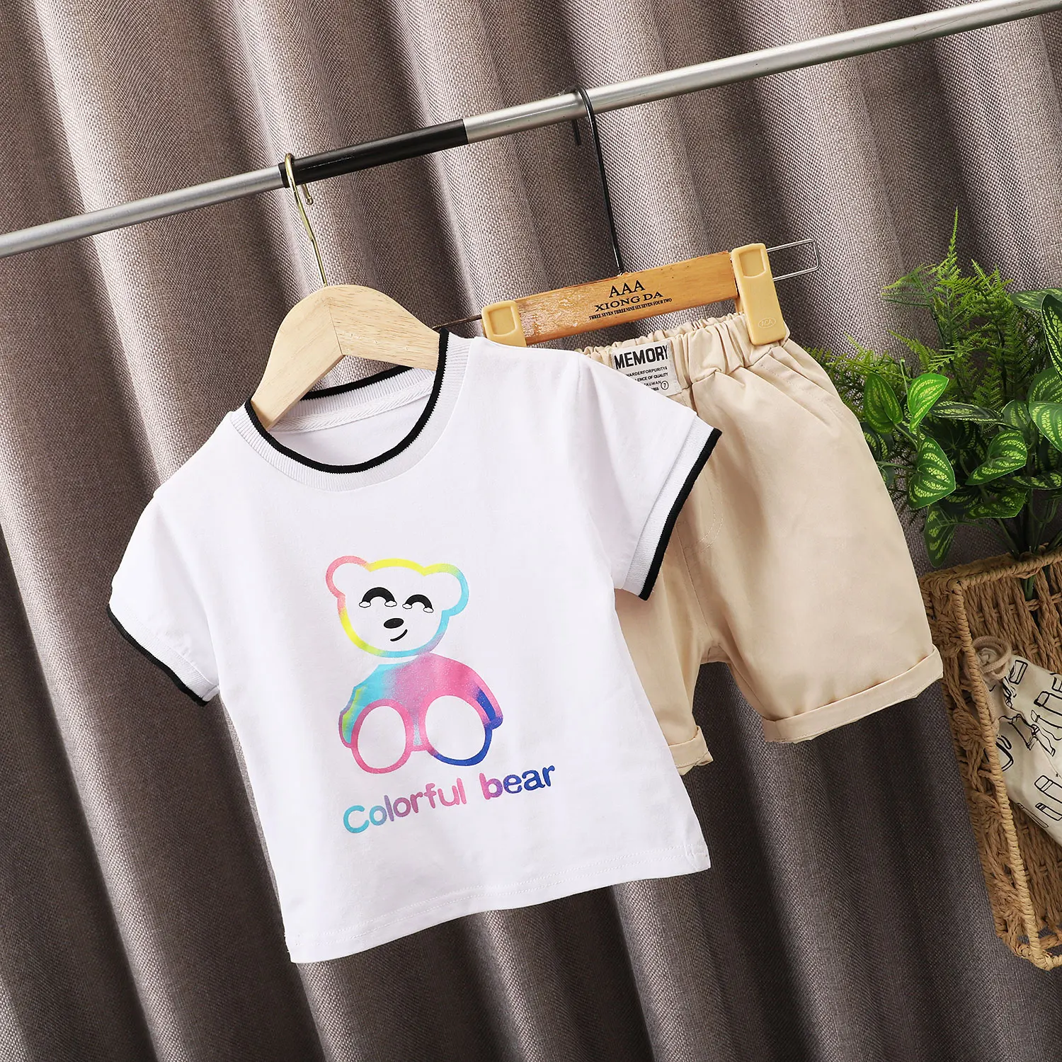 2020 летняя одежда для маленьких мальчиков и девочек, хлопковая спортивная футболка с мультяшным рисунком, штаны, 2 шт.компл., одежда для малышей, повседневная детская одежда