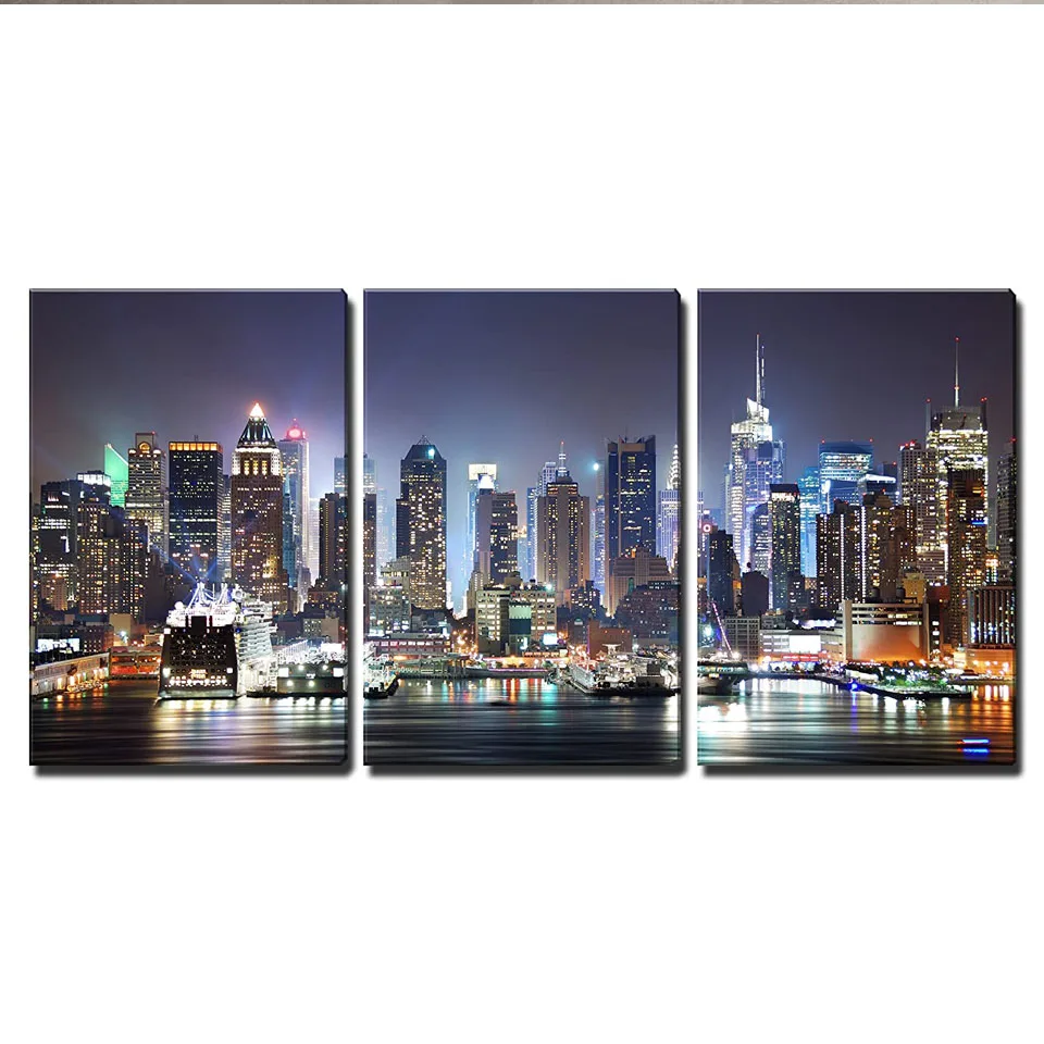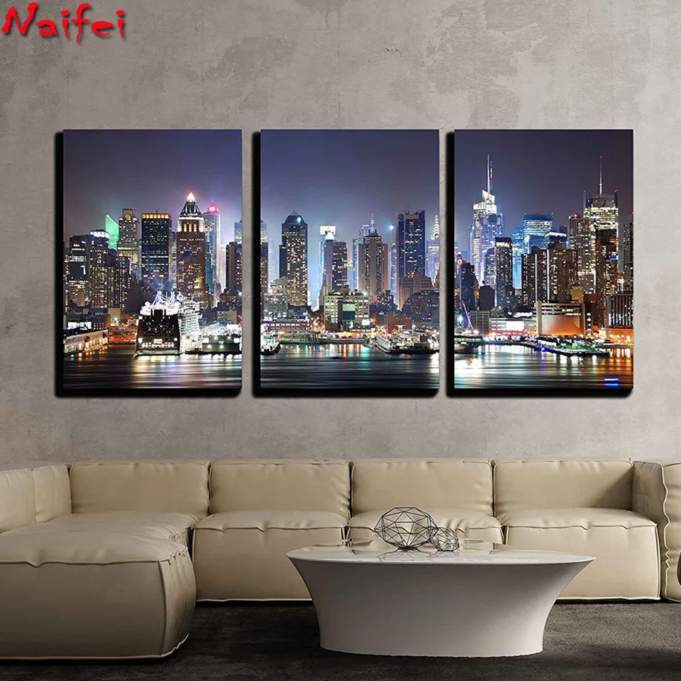 Алмазная 5D Вышивка сделай сам, картина из квадратных страз с изображением ночного Нью-Йорка, стразы, триптих с мозаикой