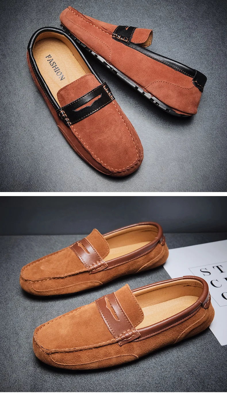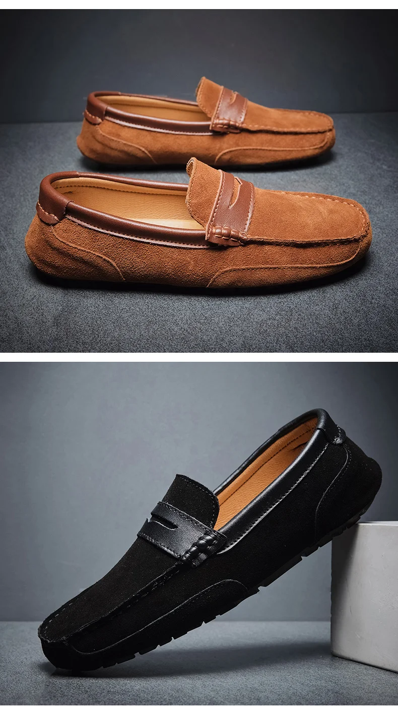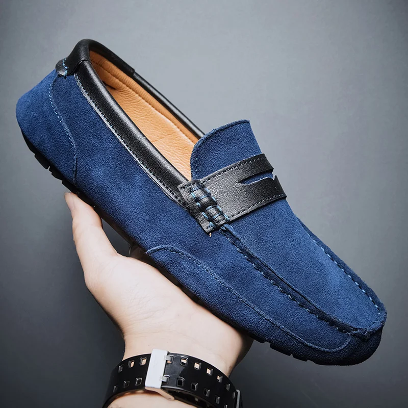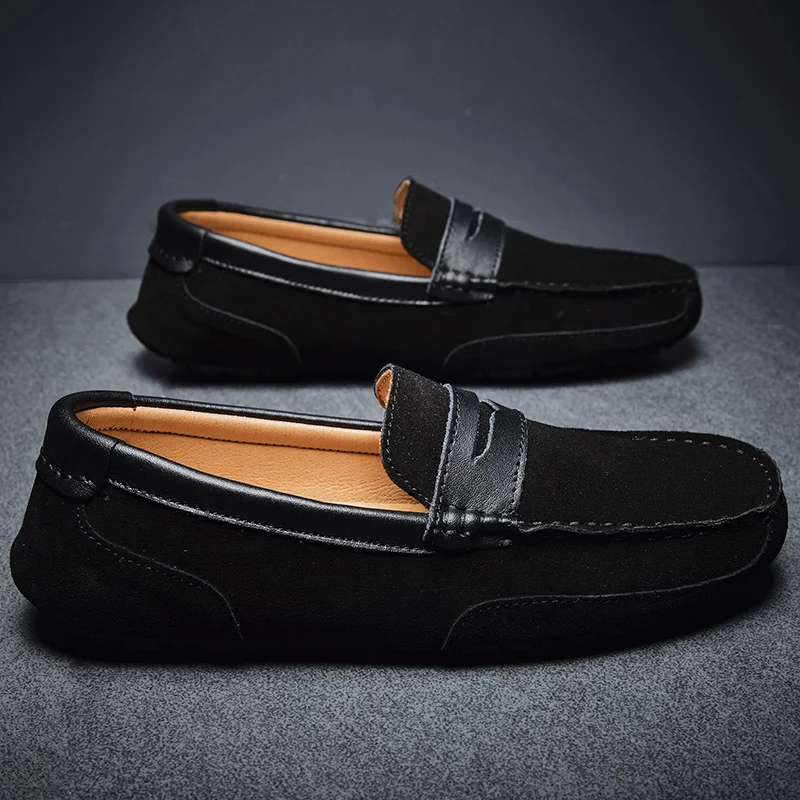 Мокасины мужские из натуральной замши, лоферы без застежки, классические, топ-сайдеры, роскошная обувь, натуральная кожа, большие размеры