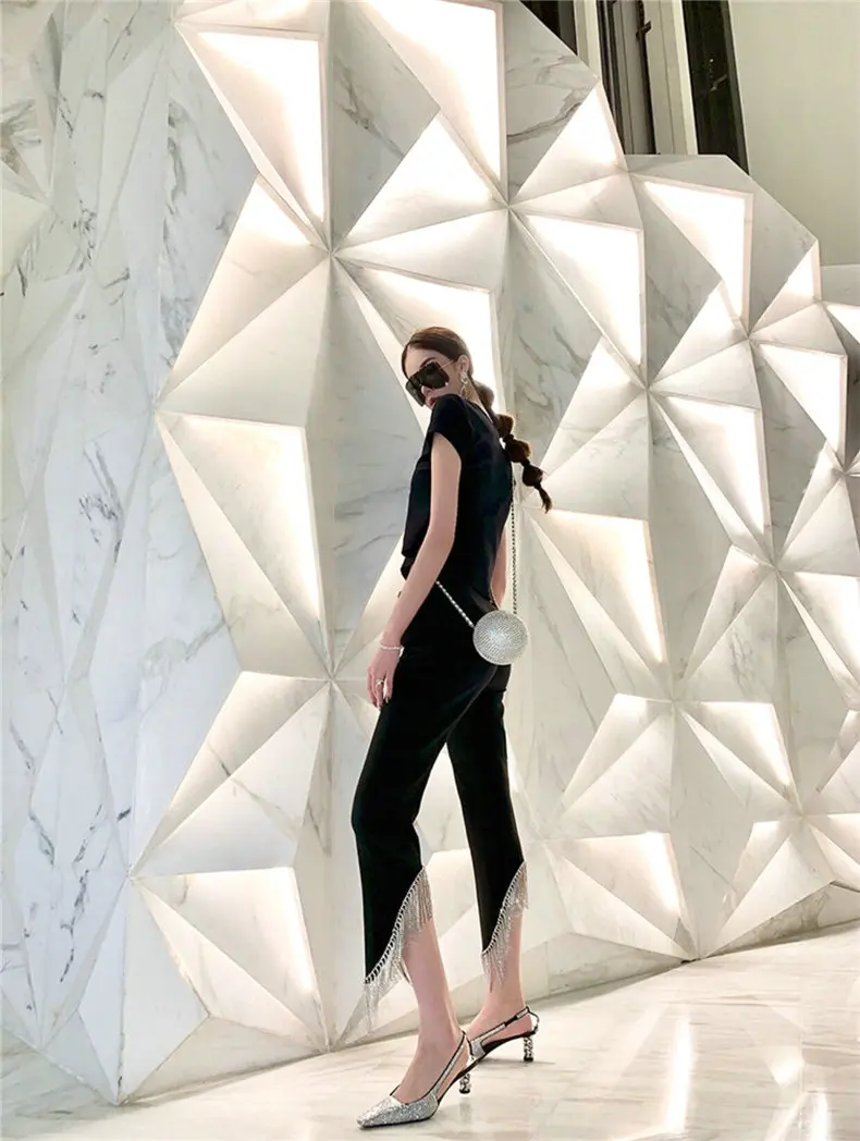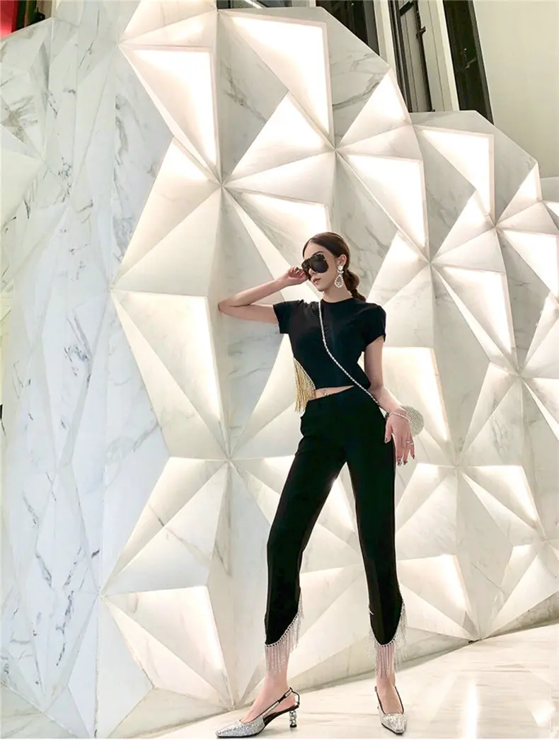 Летние босоножки в Звездном стиле; Стразы с надписью; Черные туфли ...