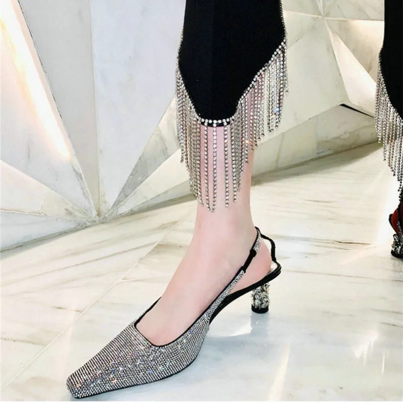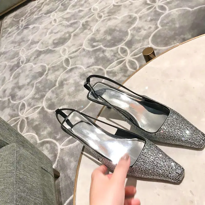 2020 новые роскошные стразы каблуки Фея Wind с квадратным носком; сандалии со стразами