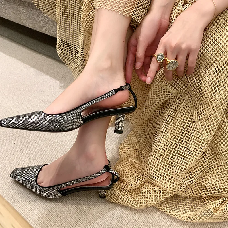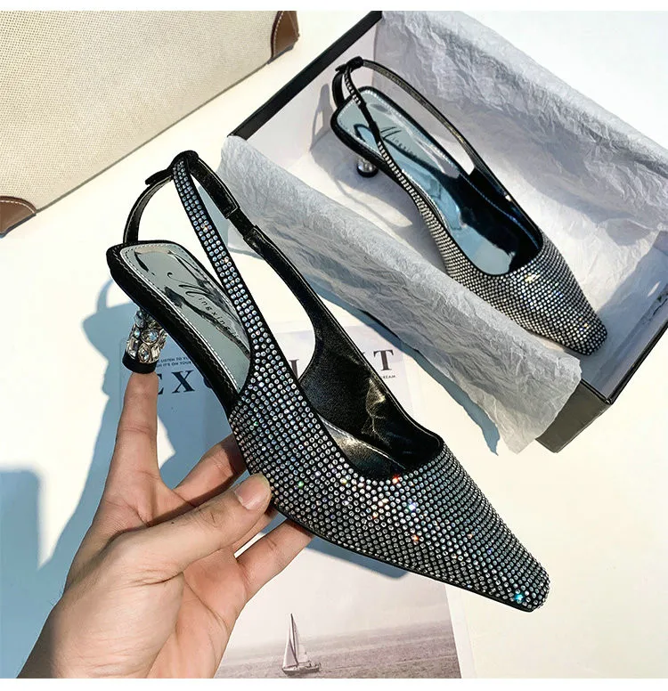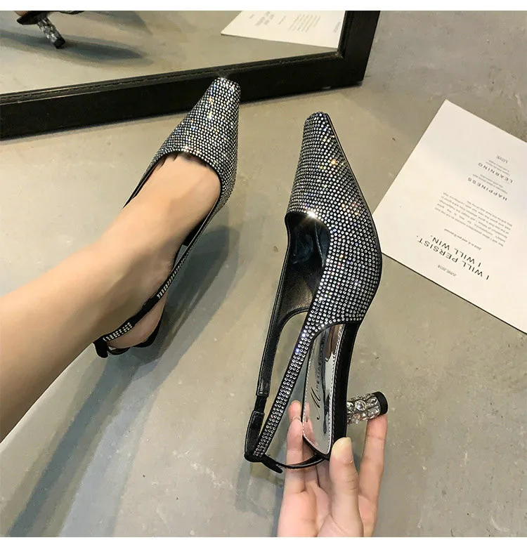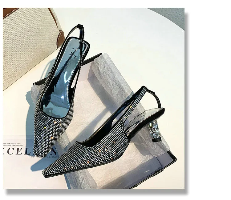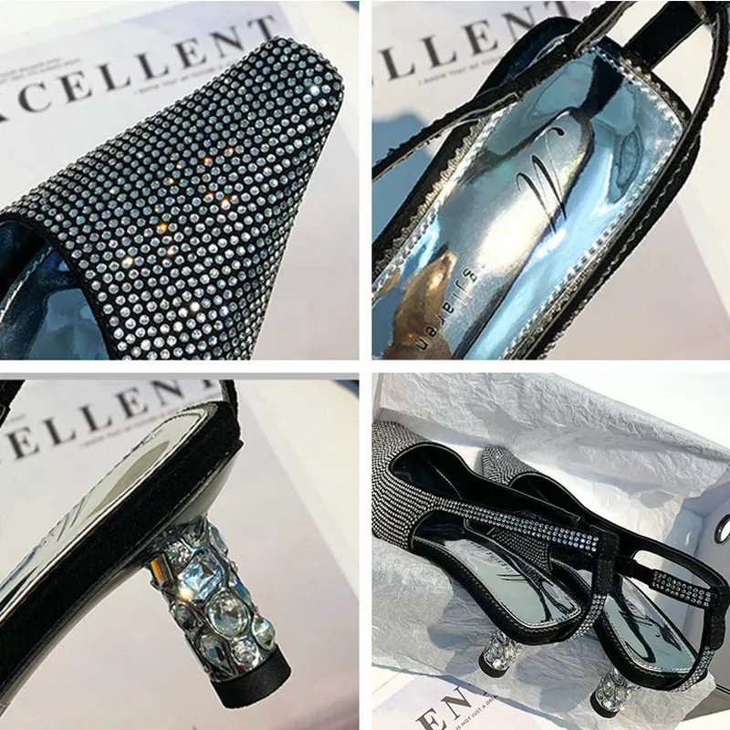 Для женщин пикантные сандалии со стразами летние Стразы Для женщин Алмаз высокие каблуки Летняя обувь под платье