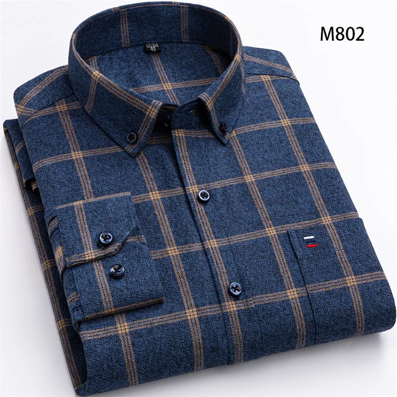 Рубашка мужская с длинными рукавами, Повседневная в клетку, 100% хлопок, с карманами, для отдыха, большие размеры от S до 7xl