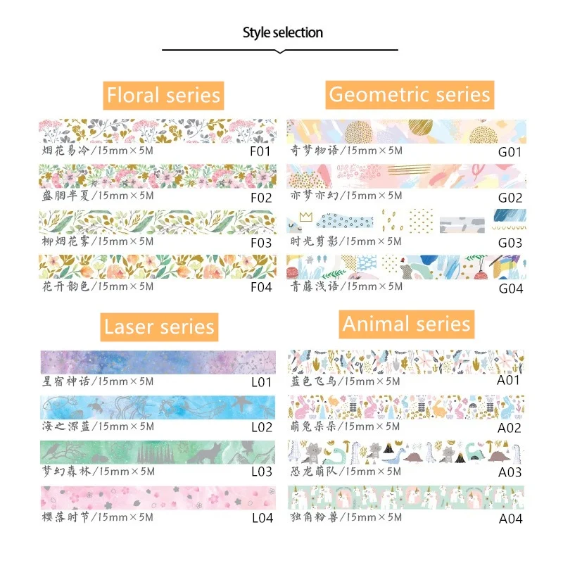 Лазерный Цвет Золотая фольга Бумага васи лента 15 мм с цветочным принтом динозавров птица Единорог клейкой ленты для художественного оформления ногтей, ручная работа наклейки A6378