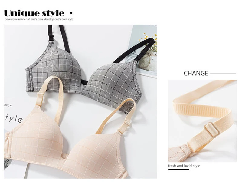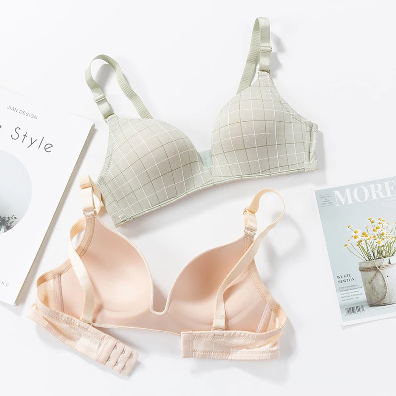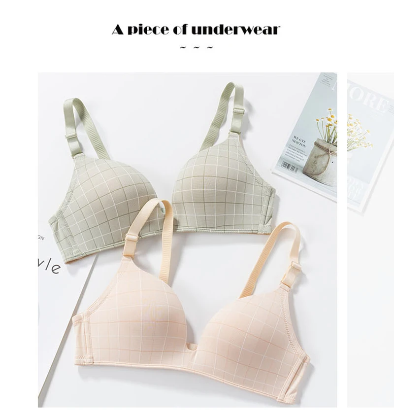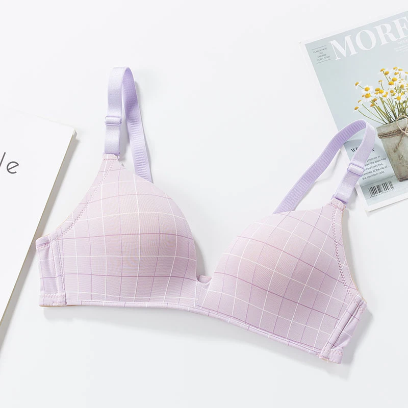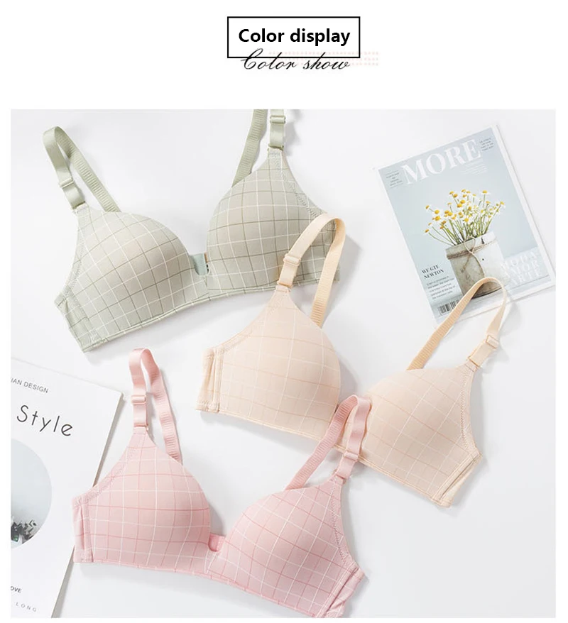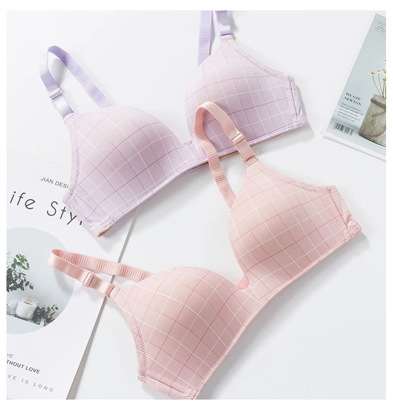 Бюстгальтер женский тонкий дышащий без косточек, пуш-ап, пикантное нижнее белье, регулируемый удобный бесшовный Бралетт, модный клетчатый
