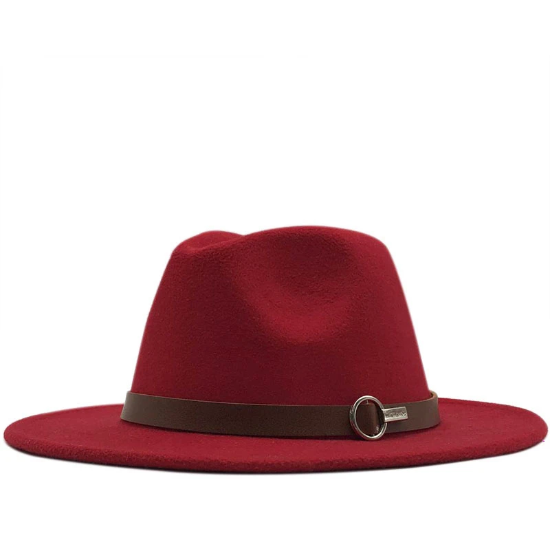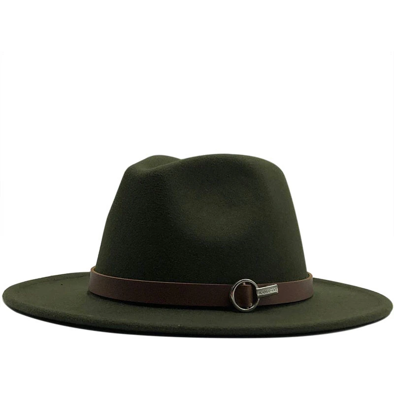 Men Women Wide Brim Wool Felt Fedora Panama Hat with Belt Buckle Ja...