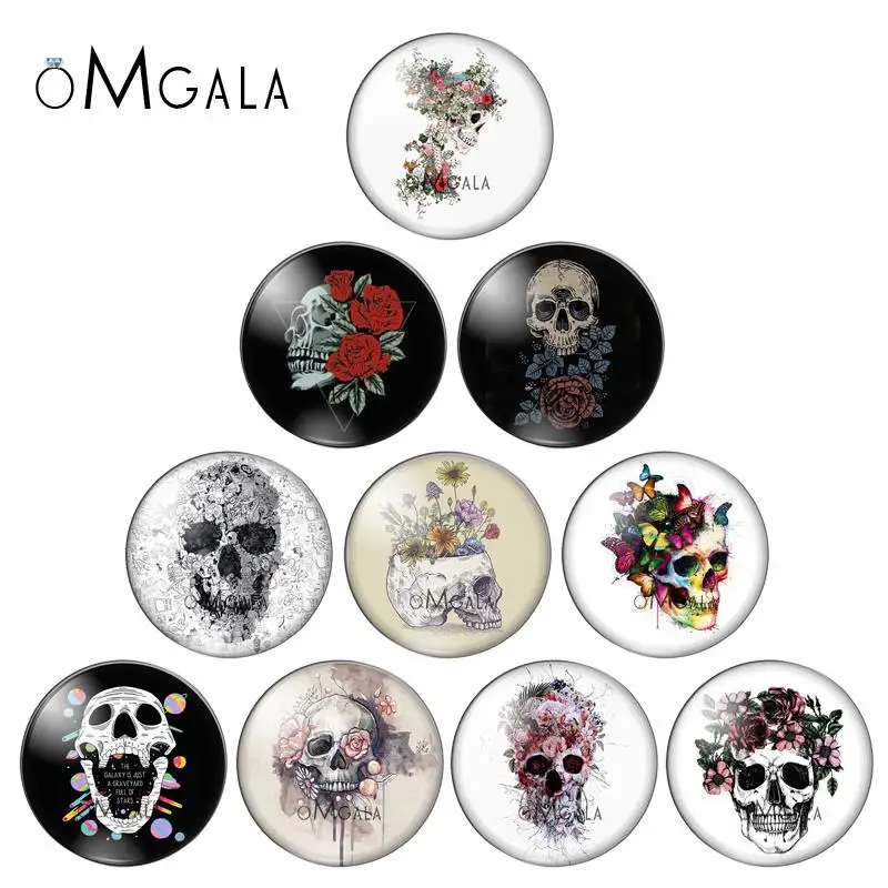 Новинка, модный круглый кабошон FlowersSkull из стекла в стиле панк, 10 шт., 8 мм10 мм12 мм18 мм20 мм25 мм, демонстрационная фурнитура