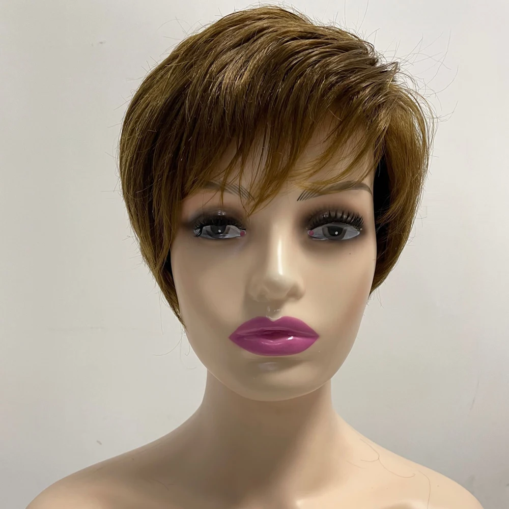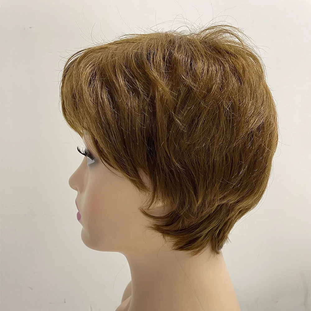 Парик Amir из коротких каштановых синтетических прямых волос для женщин Piexie Cut парик для мамы, термостойкие волнистые волосы