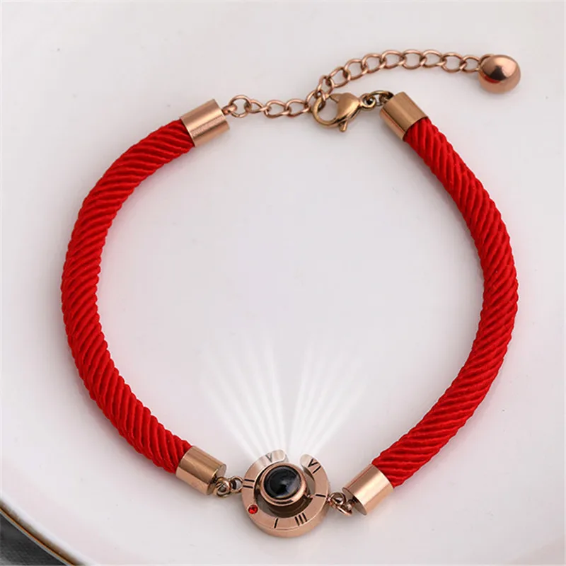 Lucky Red браслет ручной работы с веревкой для женщин и мужчин, модный романтичный браслет для влюбленных, 100 языков, браслет с проекцией I Love You, подарки