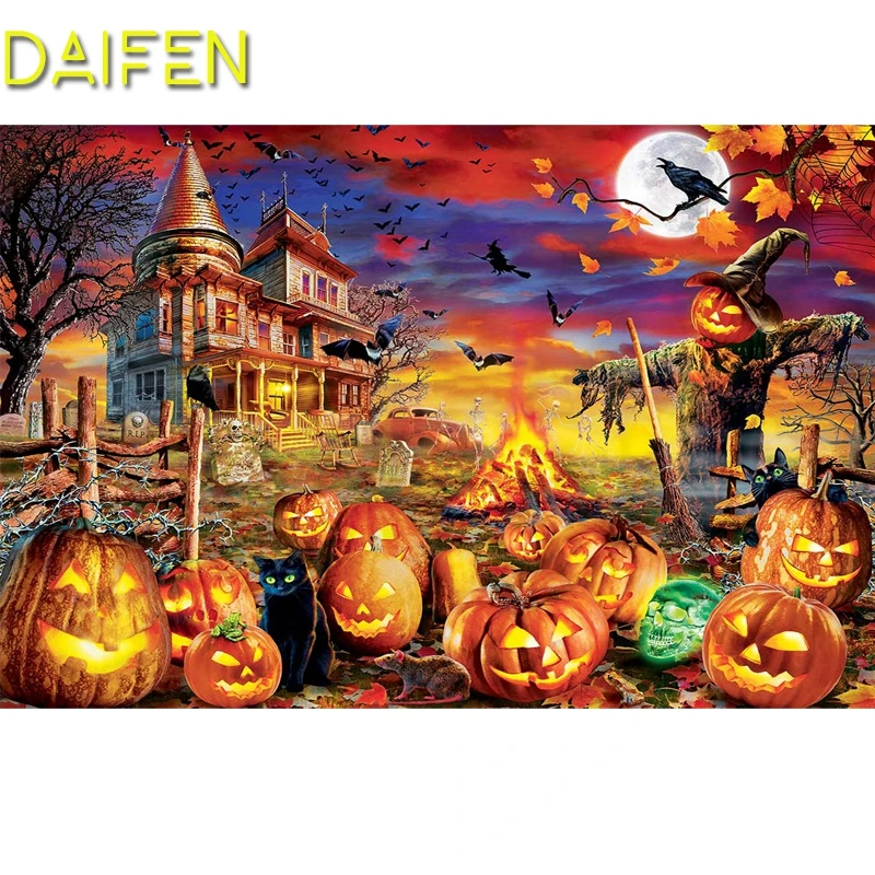 Алмазная живопись сделай сам, ворона, полная вышивка, вышивка крестиком, мультяшная тыква, пугал, полная круглая Алмазная мозаика, замок