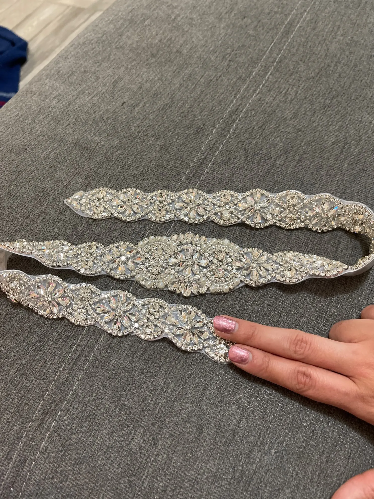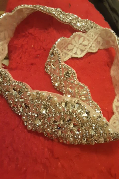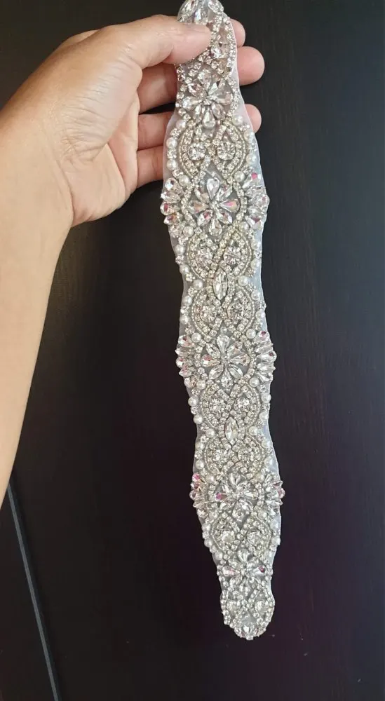 Я в восторге, и мой дизайнер также сшит вручную или так выглядит. Каждый камень крепится с резьбой. Большое спасибо за эту замечательную работу, которая будет идеальной в моем свадебном платье.