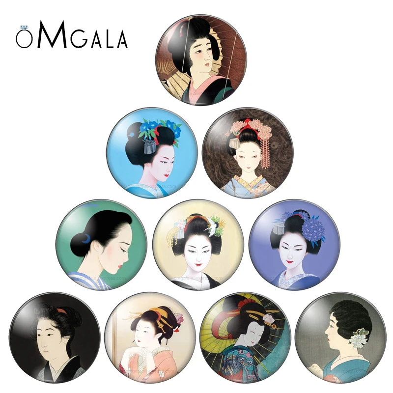 Японский художественный Рисунок укиё-э для женщин 10 шт. 10 мм12 мм18 мм20 мм25 мм Круглый Фото стеклянный кабошон демонстрационная фурнитура с плоской задней стороной