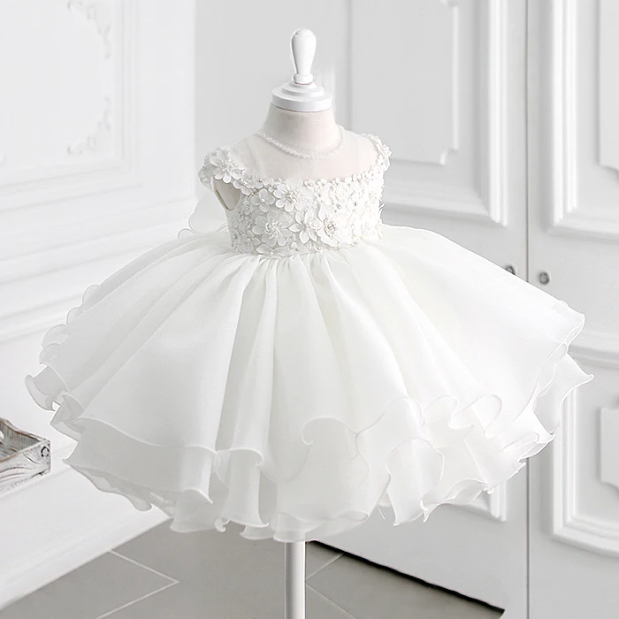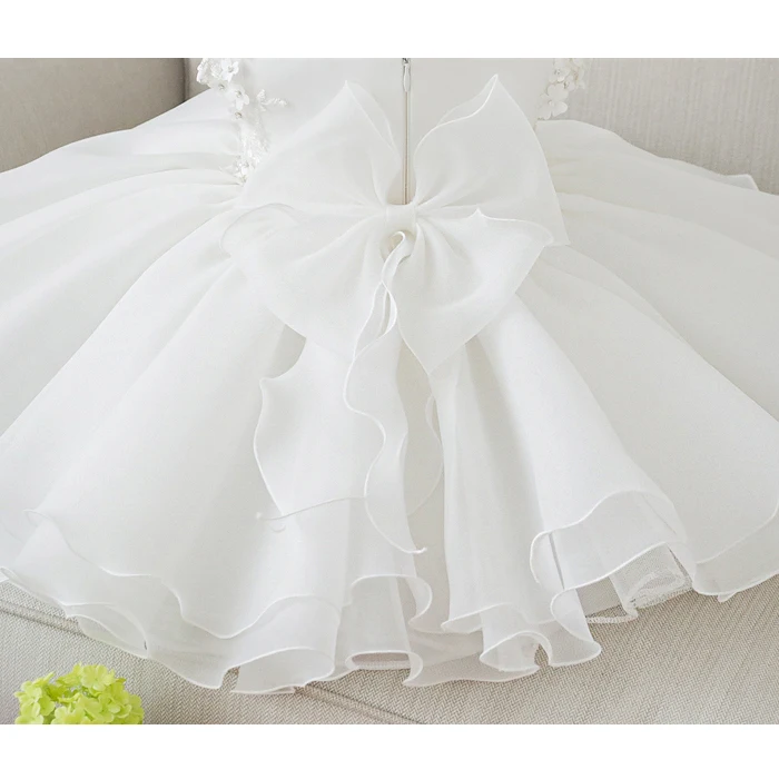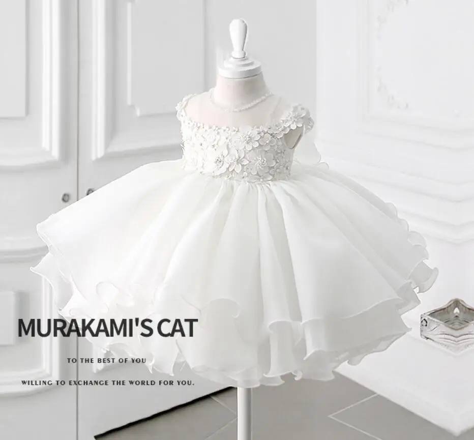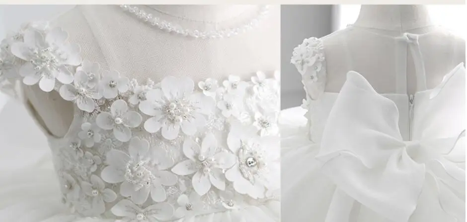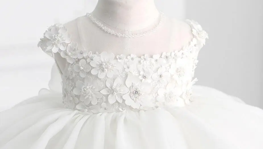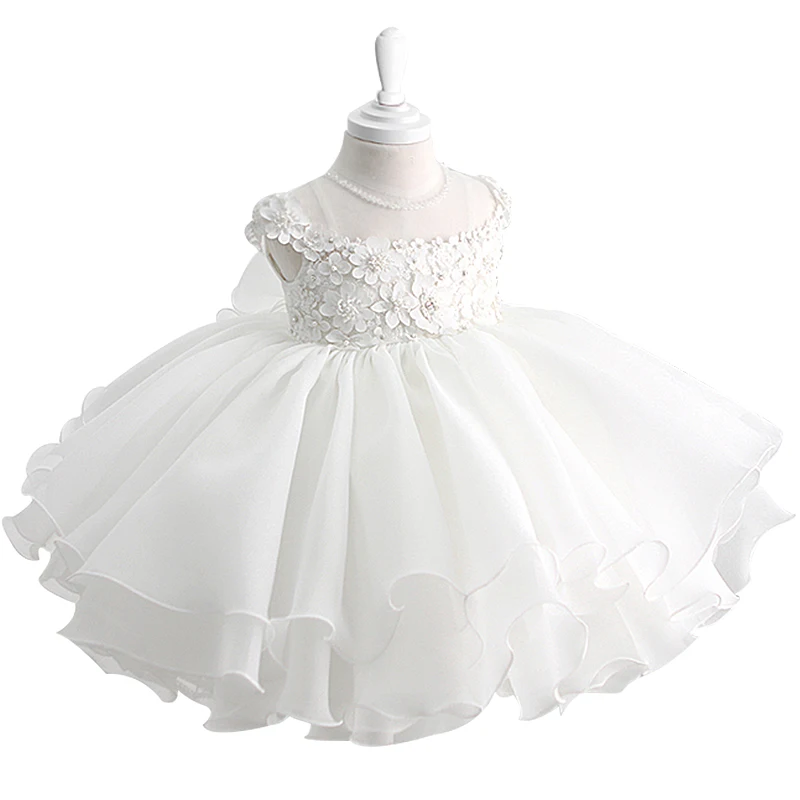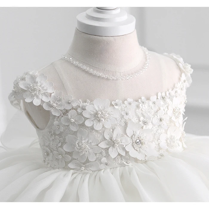 Белое платье для крещения с бисером для маленьких девочек, кружевная одежда с аппликацией для причастия, дня рождения, свадьбы, платье для крещения младенцев