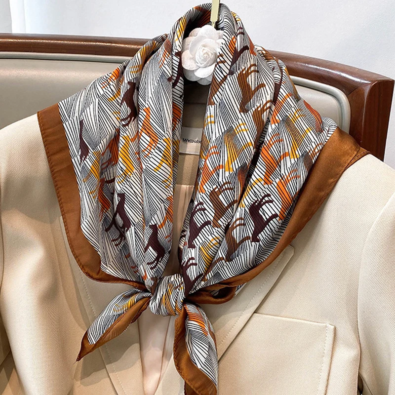 Квадратный шелковый шарф с принтом, женская модная атласная бандана...