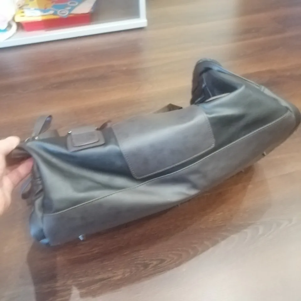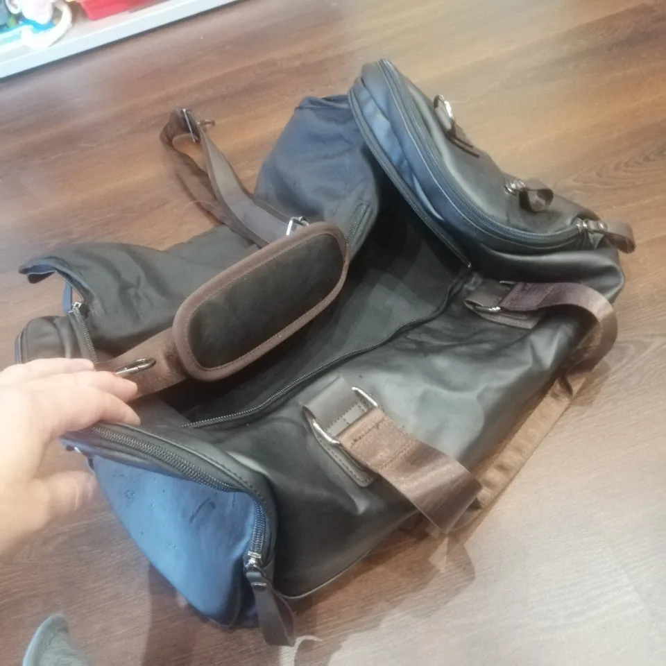 Сумка стоит своих денег, больше бы не стоила. Запах присутствует, думаю выветриться, брал под ручную кладь, посмотрю как переживёт 2 полёта. Карабины на вид хлипкие. А так на вид лучше чем передаёт фото. Это не кожа как могут подумать некоторые.(хотя есть и кожзам очень хорошего качества, мне не принципиально, лишь бы ноская была) Радует дополнительные карманы внутри сумки есть под замком а есть просто вставыши. Ну выглядит и вправду хорошо