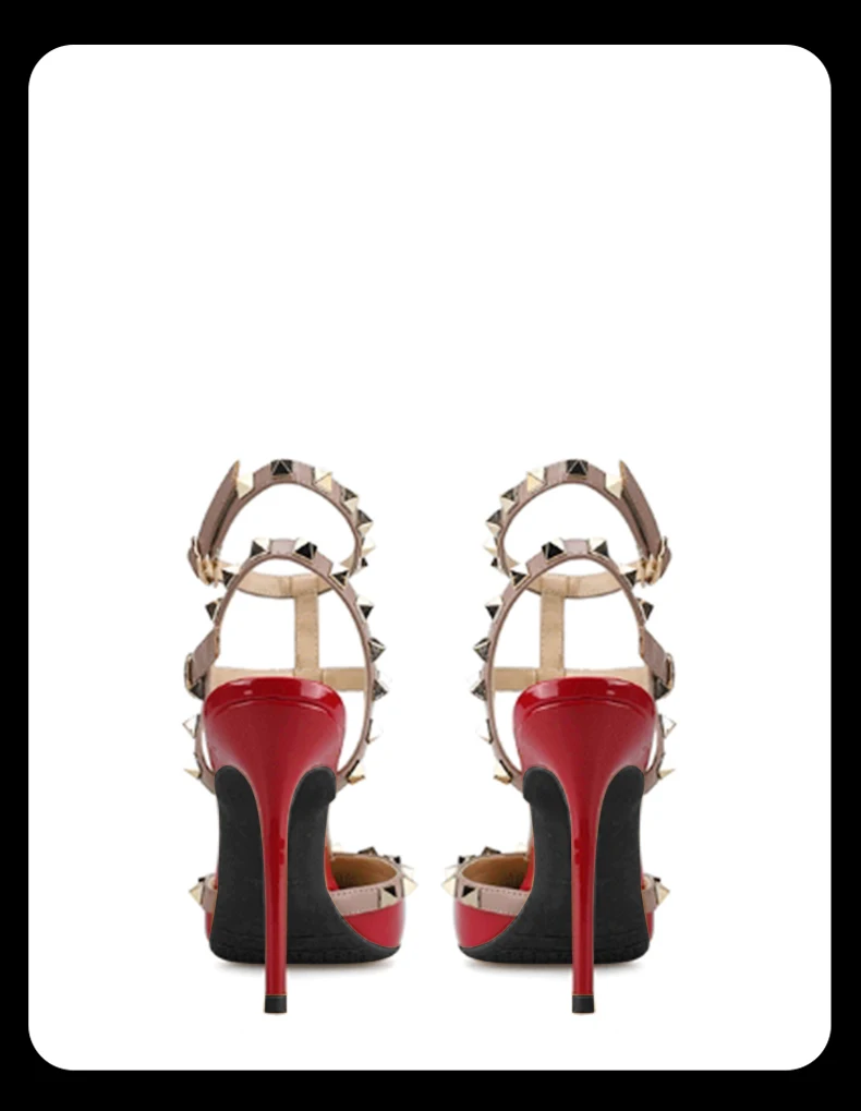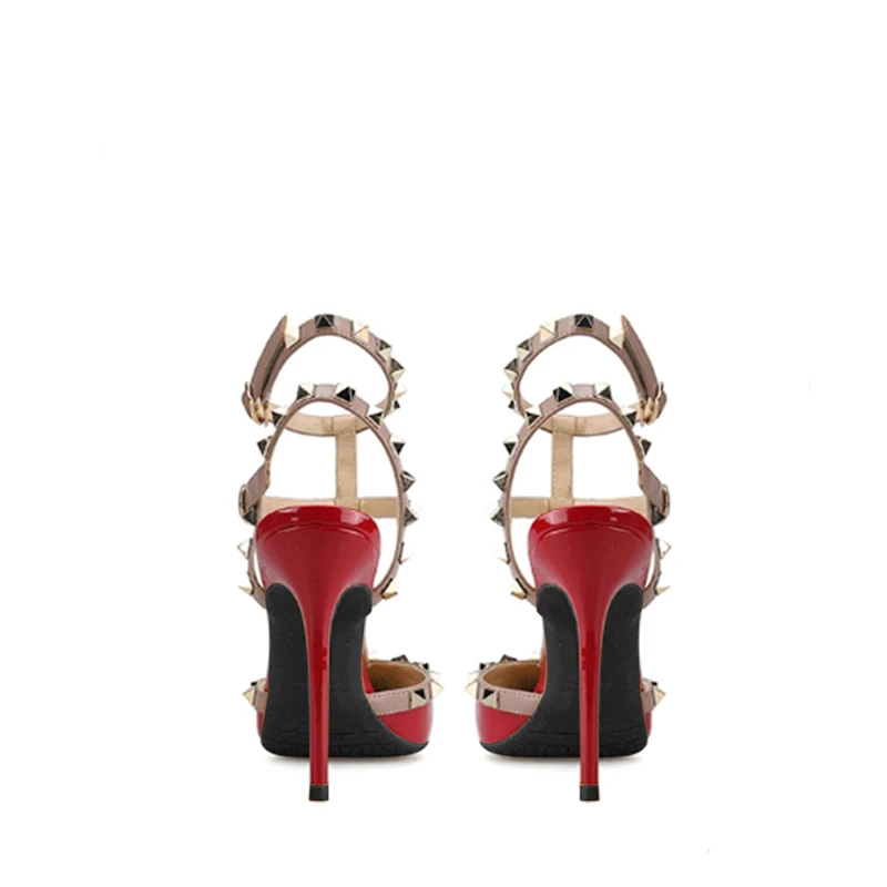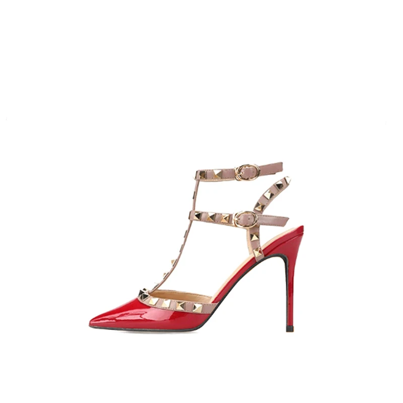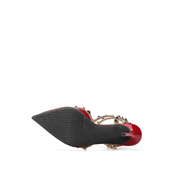 GOXEOUженские босоножки из лакированной кожи; 3 цвета; Модные женские вечерние туфли на высоком каблуке-шпильке с острым носком и заклепками; Размеры 32-46