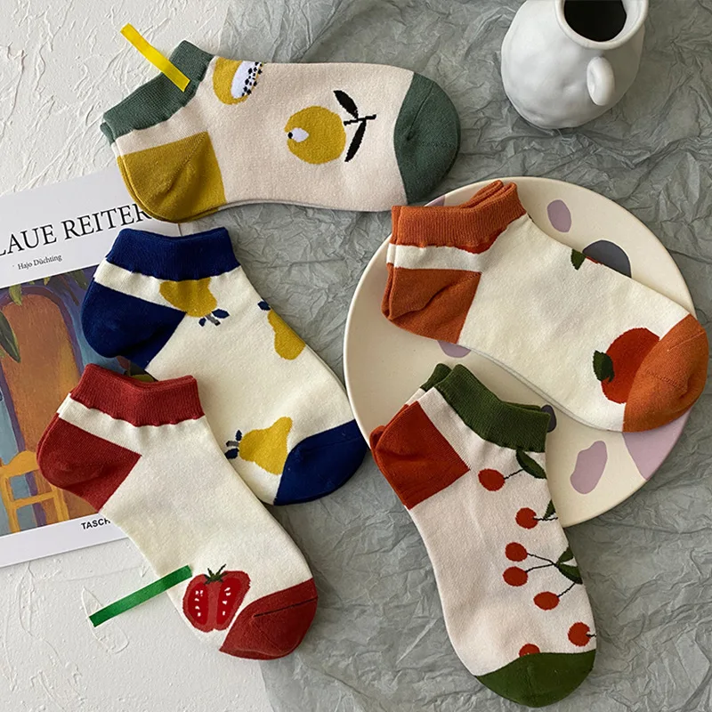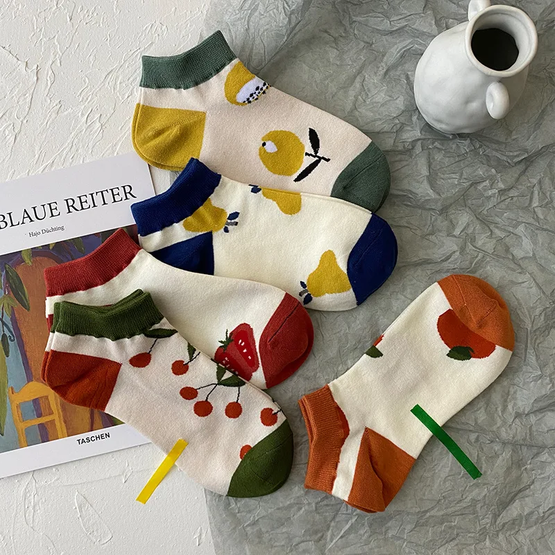Милые носки в Корейском стиле с фруктами, женские хлопковые носки с глубоким вырезом в японском стиле