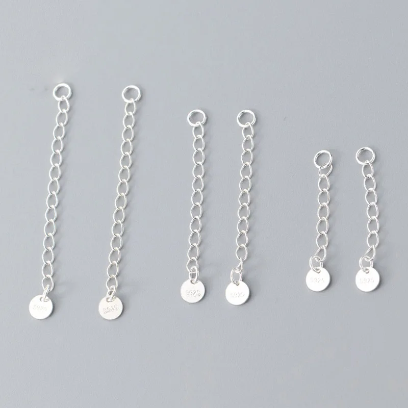 Цепочки-удлинители из стерлингового серебра 925 пробы для украшения браслетов, цепочек сделай сам, длинные хвостовые цепи, 2 шт., 30 мм, 40 мм, 50 мм, аксессуары для ювелирных изделий