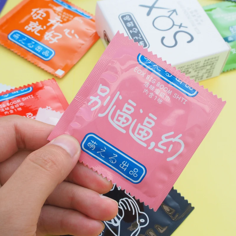 50 шт./лот, портативные влажные салфетки, полотенце, Мультяшные презервативы в форме, влажные салфетки, индивидуально обернутые, разные цвета, сделай сам