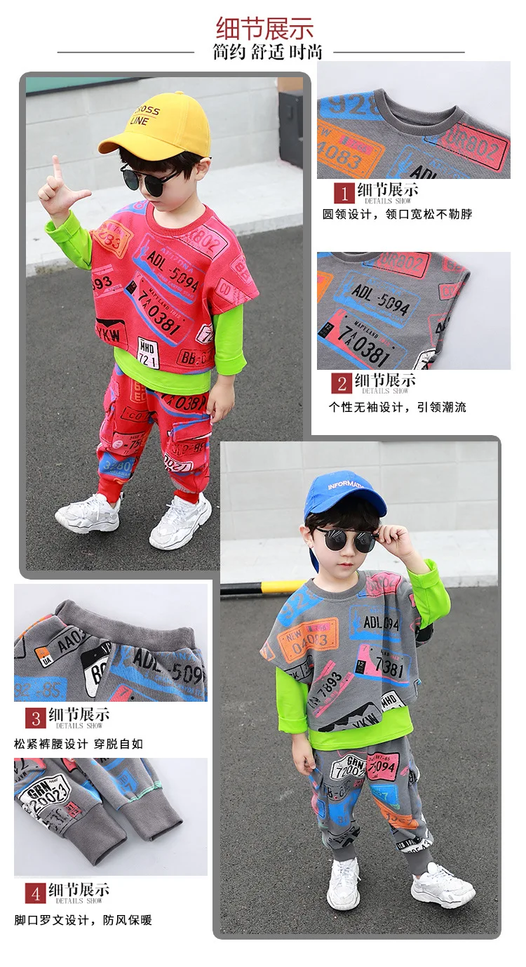 Комплект одежды для мальчиков из 3 предметов, весна-осень 2021 г., с надписью, высокое качество
