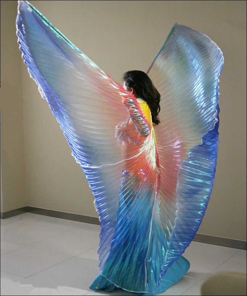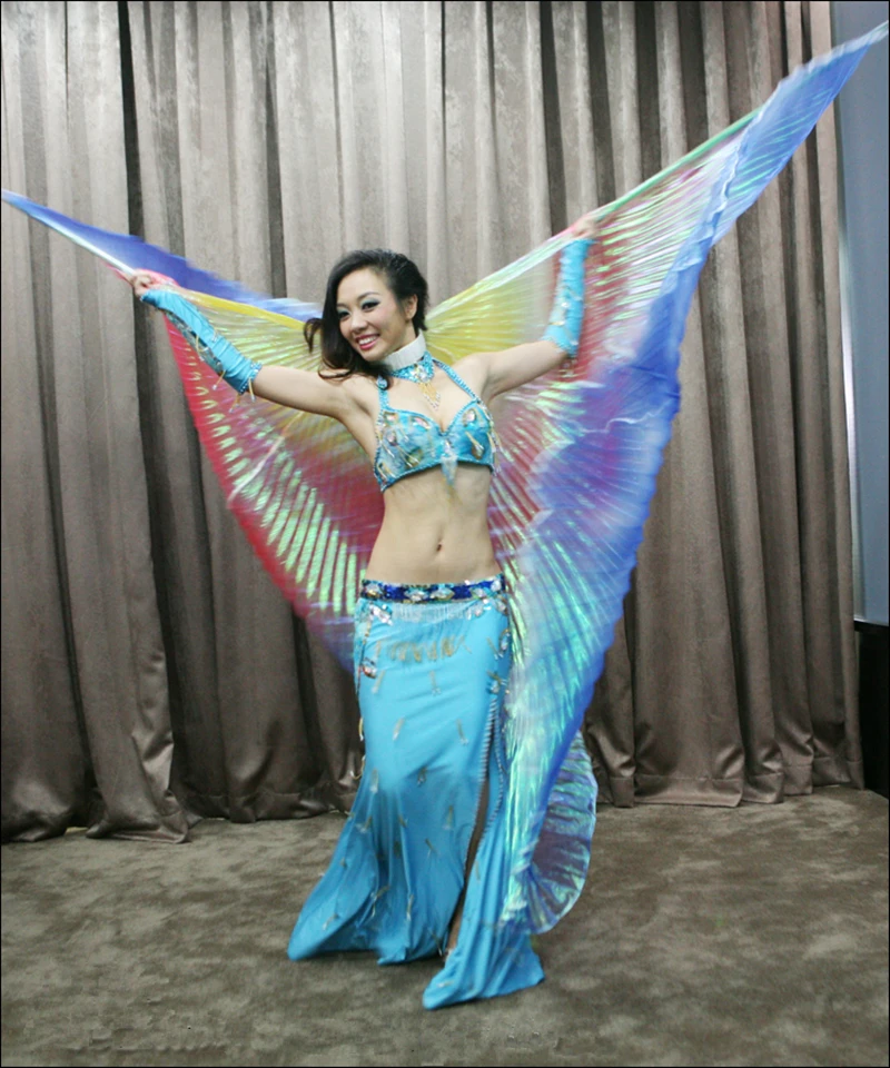 Женский костюм для танца живота, костюм для танца живота с палочками, красочные крылья, восточные крылья