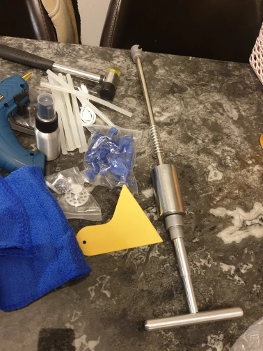 Producto con muy buena terminación para el precio que tiene. Llegó bien empaquetado y desmontado por tramos con uniones roscadas, que una vez unidos dichos tramos, no se aprecia que sean varias piezas unidas. Está claro que no es una herramienta profesional, no obstante, cumple a la perfección para sacar pequeñas abolladuras.
