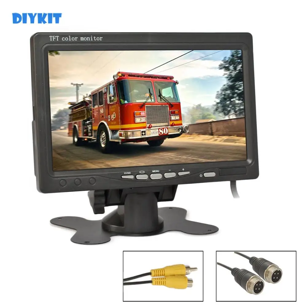 Видеовход DIYKIT, DC12V-24V дюйма, 7-дюймовый TFT ЖК-дисплей, автомобильный монитор заднего вида RCA, 4-контактный, для камеры заднего вида, камеры наблюдения