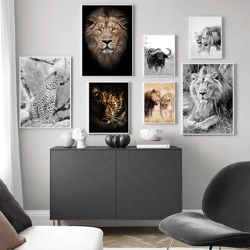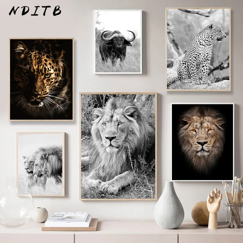 Дикие животные Лев плакат с леопардом скандинавский холст печать черно-белая настенная живопись скандинавский Декор Картина домашний декор