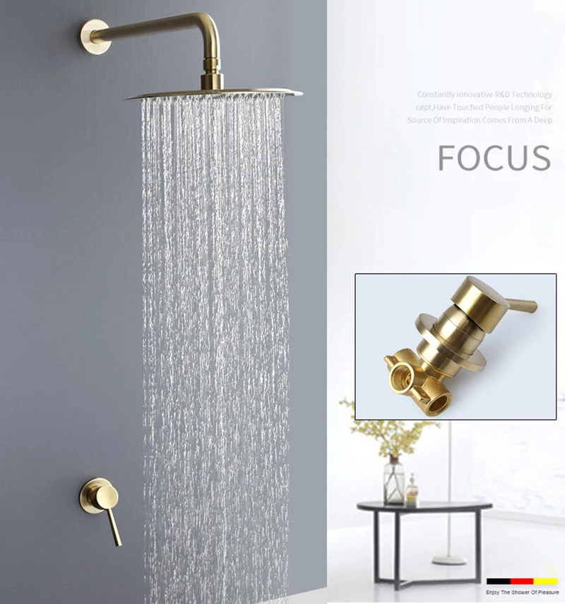 Набор смесителей для ванной комнаты, матовый золотой Латунный смеситель для душа, настенные или Потолочные и настенные смесители для душа, насадка для душа 10 дюймов