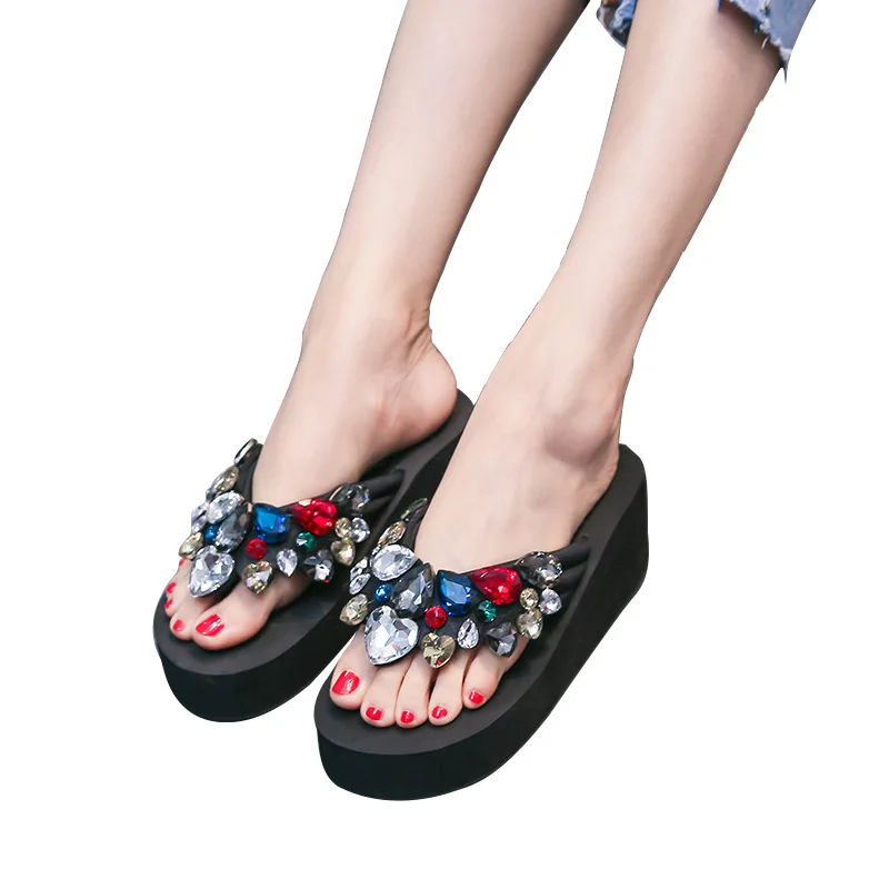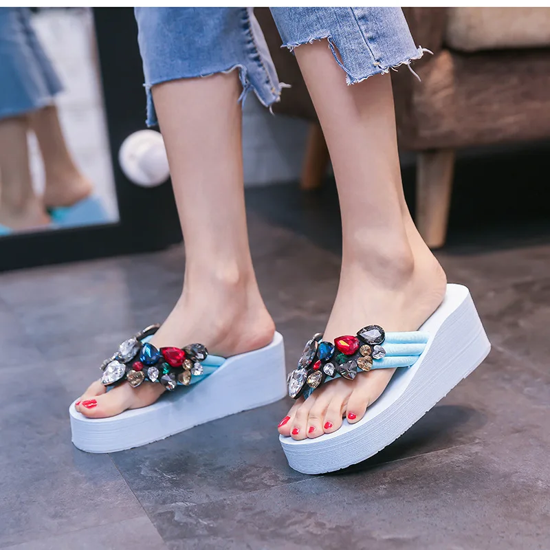 Сандалии женские, на высоком каблуке 6 см, Нескользящие, стразы, домашние, для пляжа, отдыха