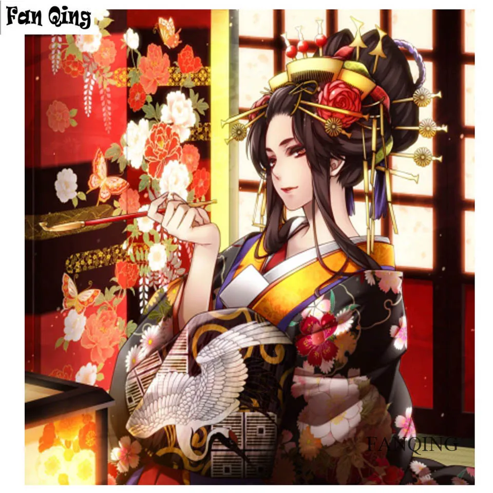 , 5d Diy алмазная живопись мультфильм девушка вышивка крестом полная дрель мозаика Алмазная вышивка Японский гейша живопись,