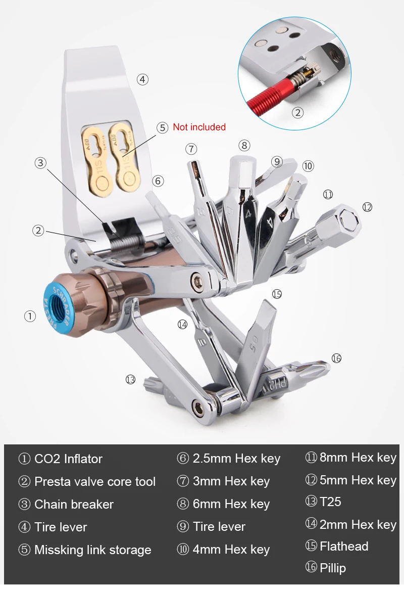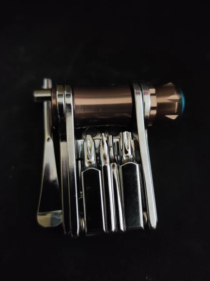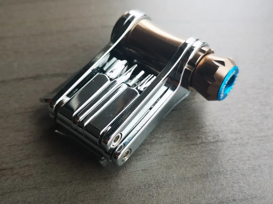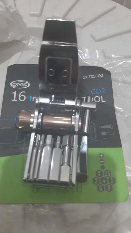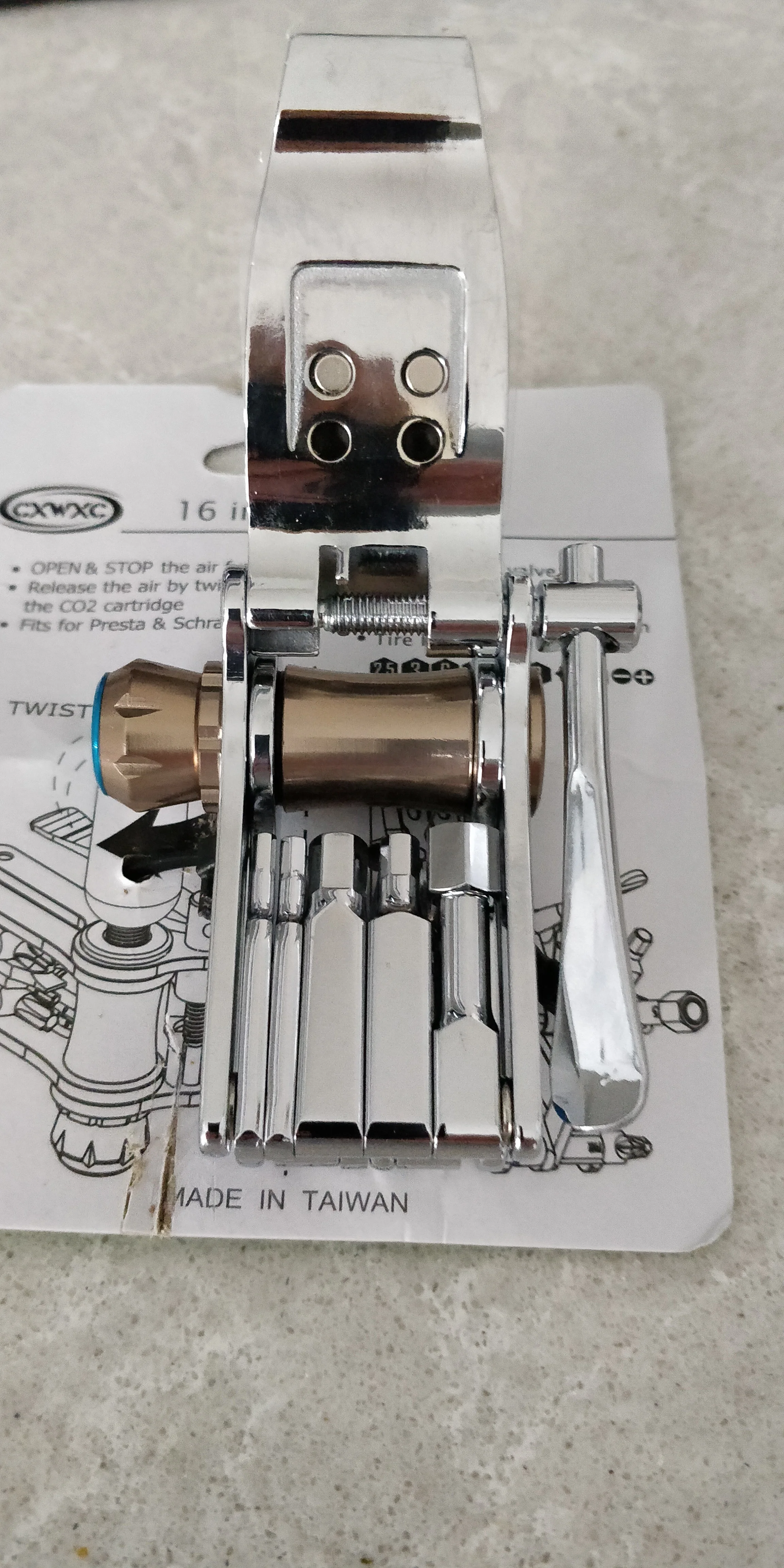 Хорошо сделанный инструмент, насадки плотно прилегают, и рычаг действительно хороший. Инфлятор CO2 довольно громоздкий, но хорошо сидит.