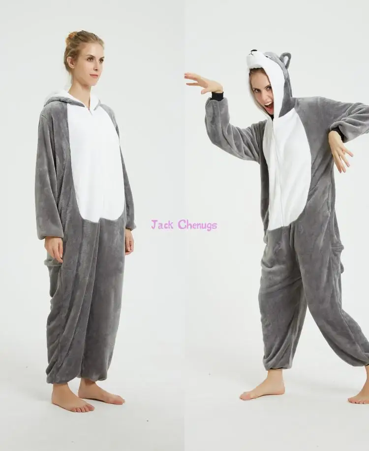 Хаски Волк kigurumi Комбинезоны пижамы унисекс Для женщин от Onesie, оптом, пижама в виде животных Единорог Комбинезоны кролик с изображением кота и жирафа, одежда для сна, пижамный комплект