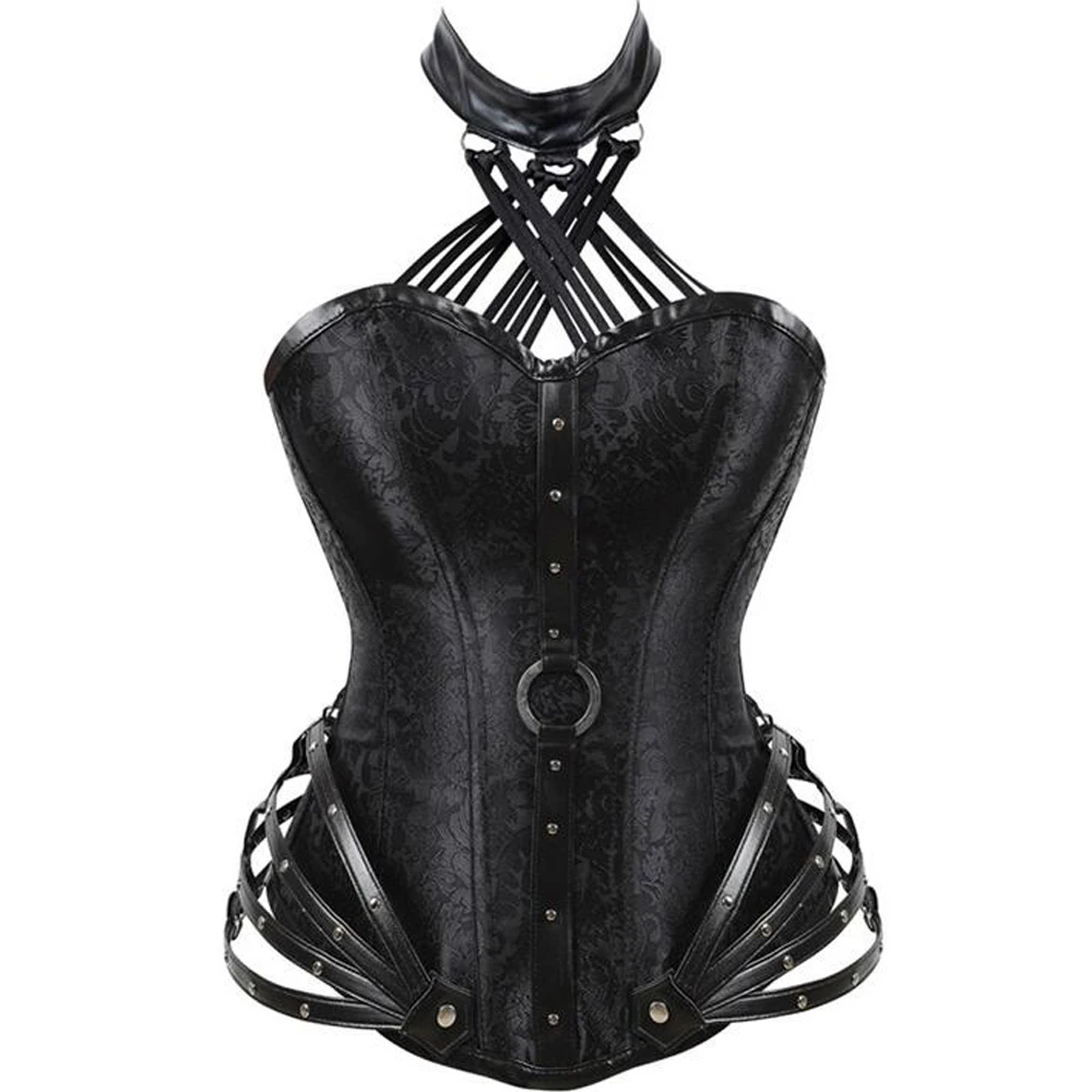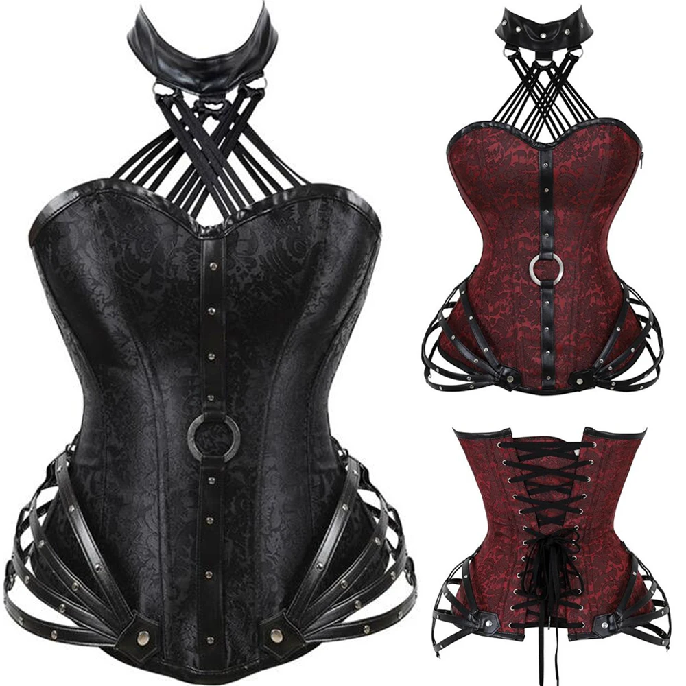 Черный готический корсет для женщин, сексуальный корсет из искусственной кожи, Бурлеск, корсет для талии, красный корсет в стиле стимпанк, стальной корсет, панк, гот