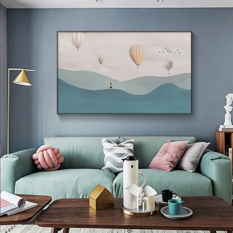Современные пейзажи, горы, воздушный шар, холст, живопись, постеры и печать, искусство, настенные картины для гостиной, спальни, домашний декор