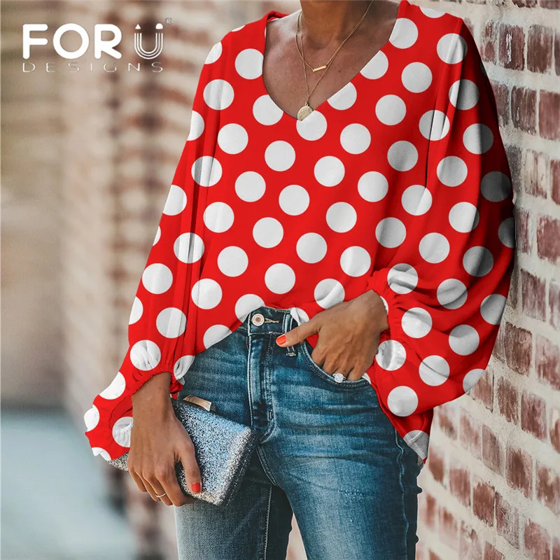 Блузка женская шифоновая с принтом в горошек, дышащая, FORUDESIGNS, размера плюс
