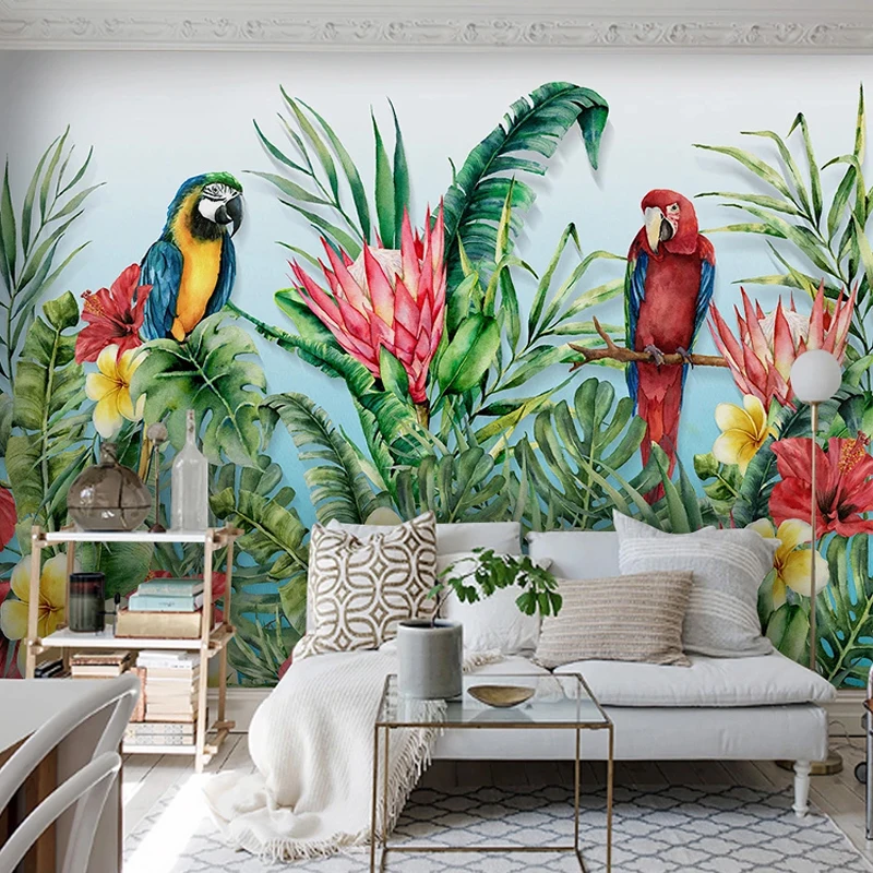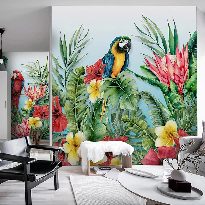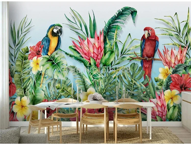 Современная простая 3D настенная бумага, тропические растения, листья, птица, Фреска для ресторана, кафе, гостиной, кабинета, фоновая бумага для детской спальни
