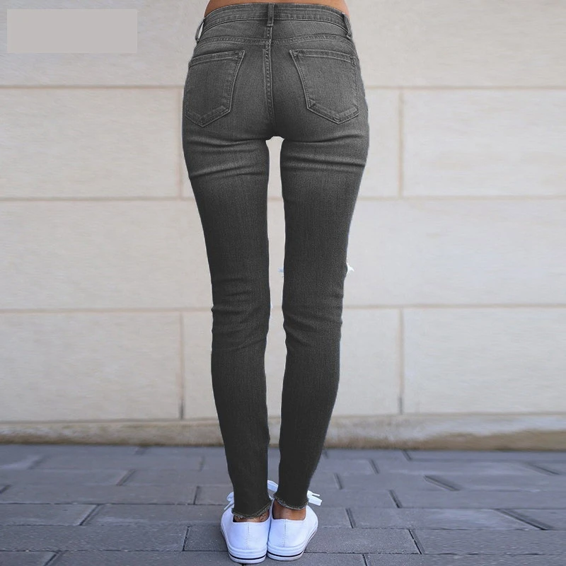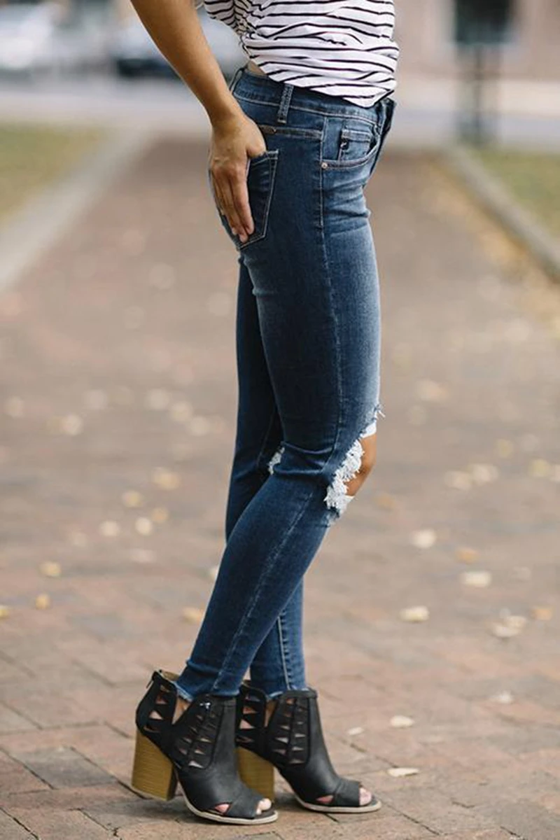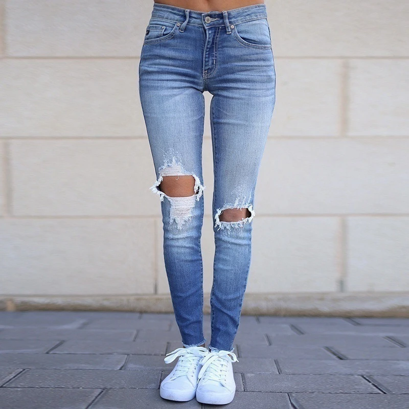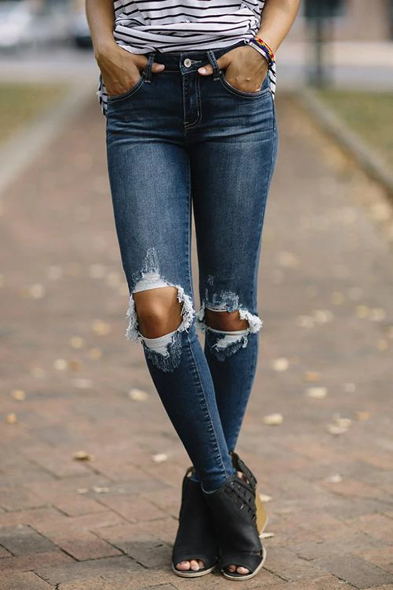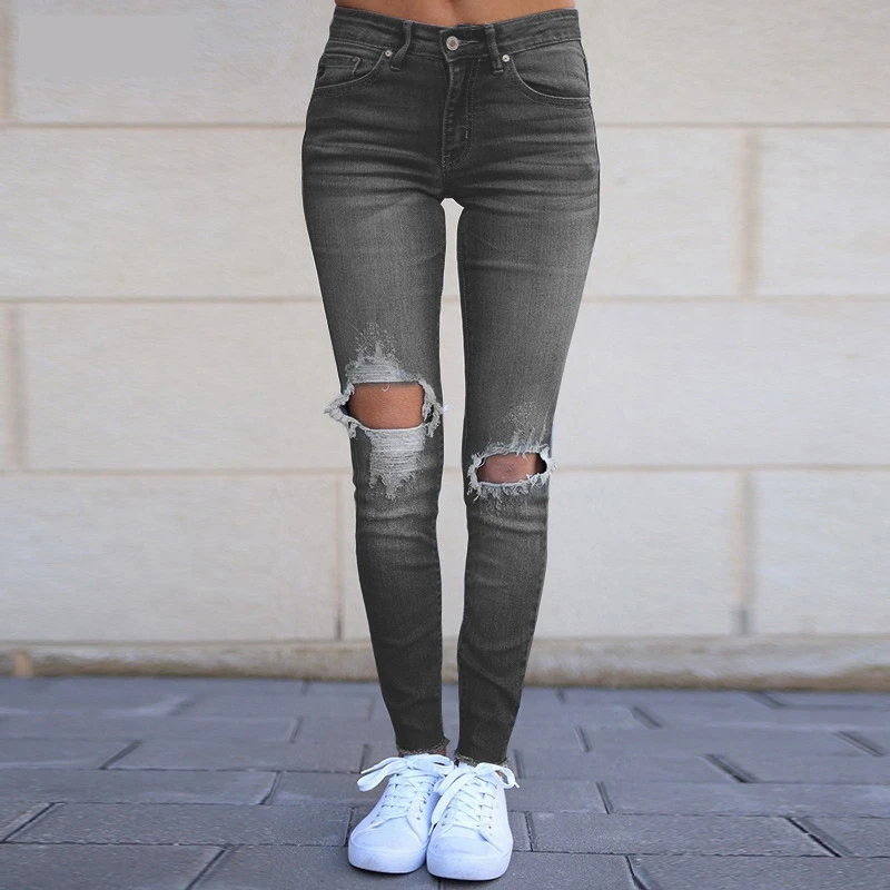 Женские повседневные джинсы, джинсы со средней посадкой, женские эластичные Стрейчевые джинсы с эффектом пуш-ап, потертые джинсовые облегающие брюки-карандаш