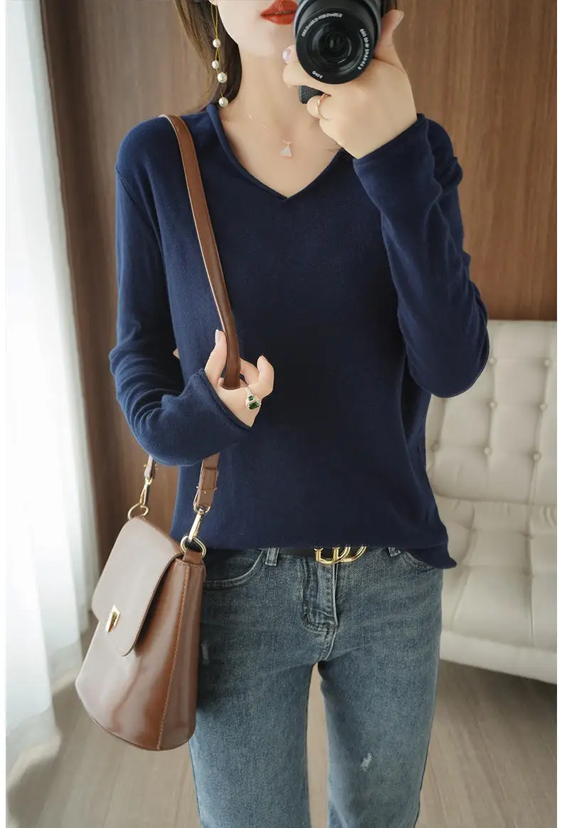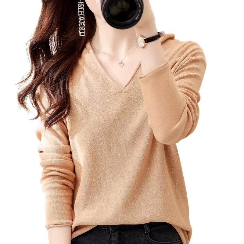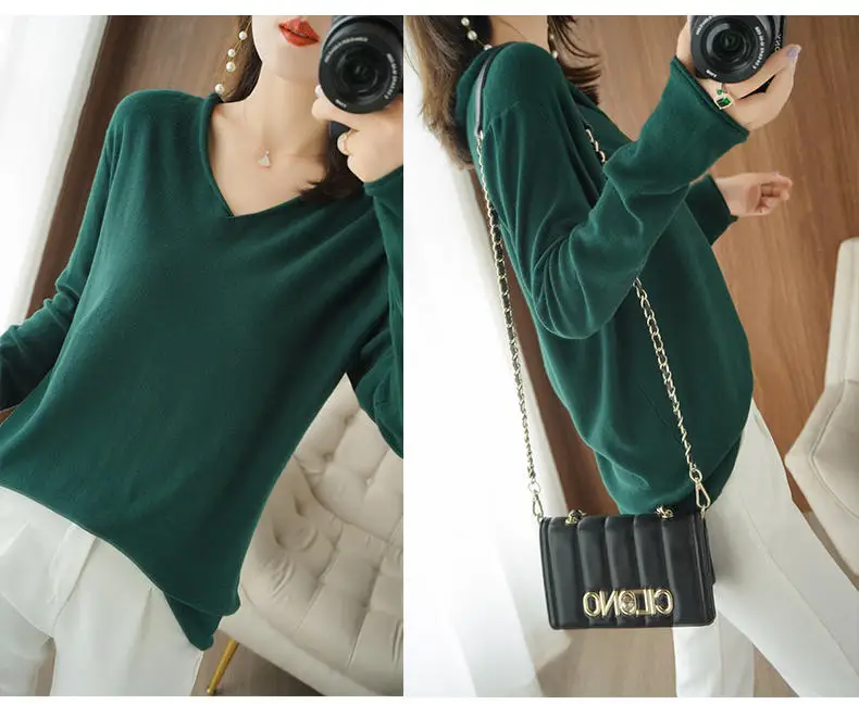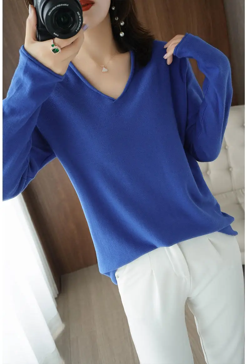 Свитер женский свободный из чистого хлопка, с V-образным вырезом, на осень и зиму, размера плюс