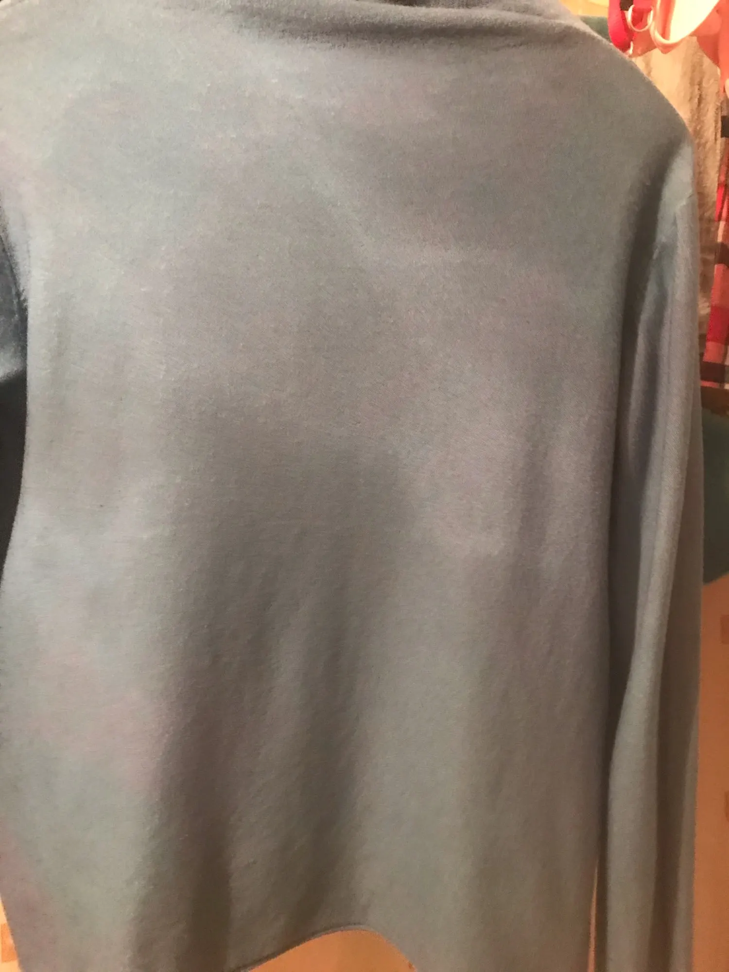 хорошая кофтёна, фото соответствует, даже неожиданный странный хлястик- воротничок сзади её не портит - прикольно)))) кофточка из тёпленьких и тоненьких по материалу, цвет полностью соответствует фото, размер L на 42 российский, на 44 будет не так выглядеть, покупкой довольна, товар пришел в заявленные сроки, всем спасибо за работу, к покупке рекомендую