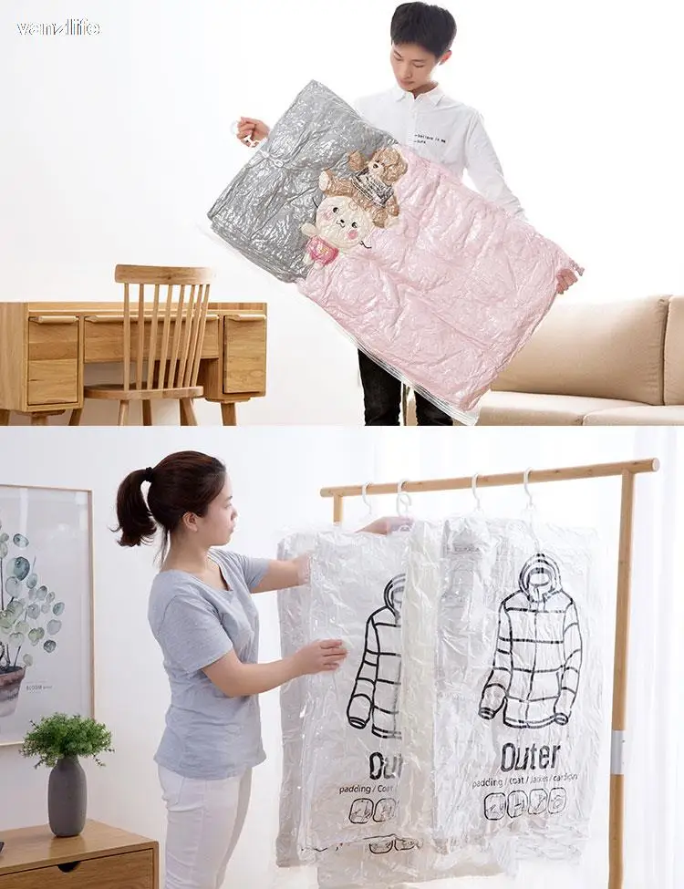 Vanzlife висячая прозрачная компрессионная сумка, вакуумная сумка для извлечения воздуха, маленький большой размер, сумка для хранения одежды, 1 шт.
