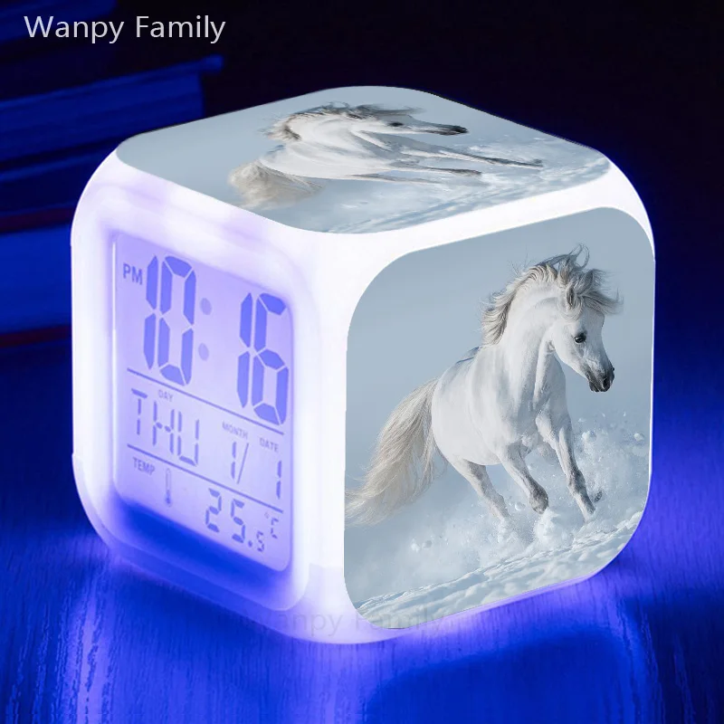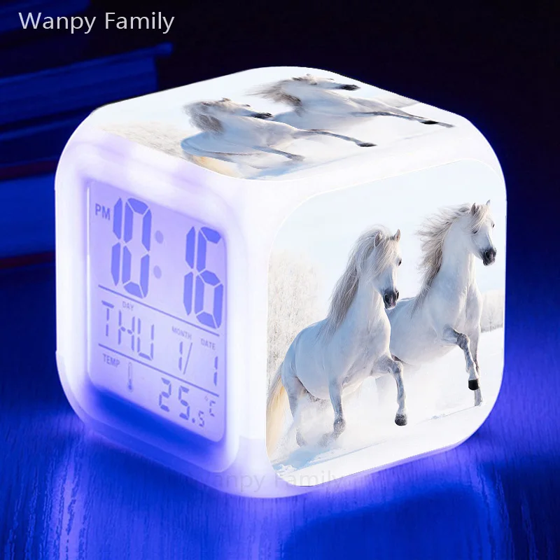 Новинка 2022, часы-будильник с белой лошадью, 7 цветов, светящиеся ...
